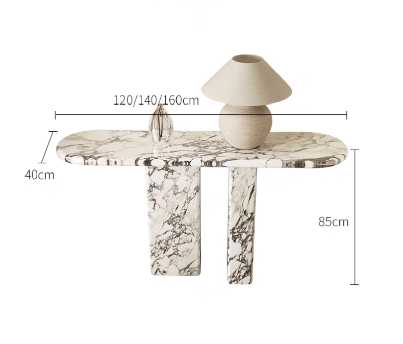 Available in multiple sizes (120cm, 140cm, and 160cm) to suit your space, this console table is both functional and artistic, offering ample surface area for decor, lamps, or statement pieces. The smooth, polished finish ensures durability while exuding timeless charm.