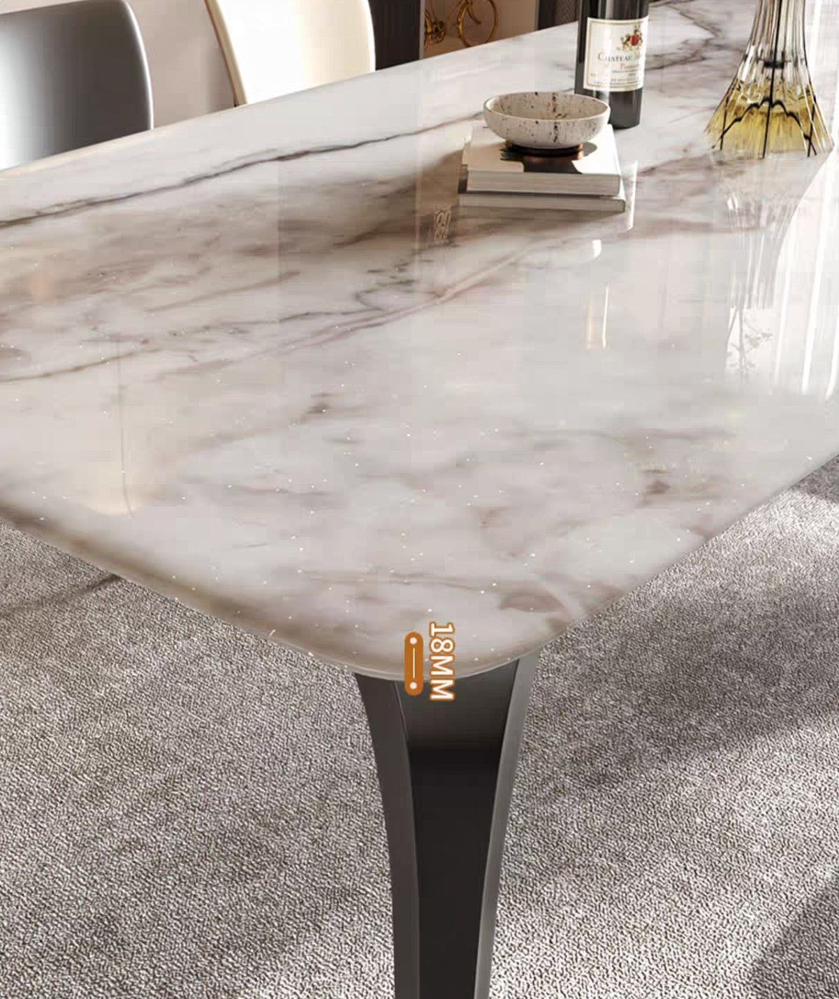 Elevate your dining experience with the Luxe Marquina Marble Dining Set, a sophisticated blend of modern elegance and timeless design. Featuring an 18mm thick Marquina marble tabletop with beautiful natural veining, this set brings a luxurious touch to any dining space. Supported by sleek, sturdy legs, the table offers both durability and style. Paired with contemporary chairs that provide comfort and aesthetic appeal, this set is perfect for hosting intimate dinners or lively gatherings. Transform your home with this stunning centerpiece, designed for those who appreciate refined taste and quality craftsmanship.