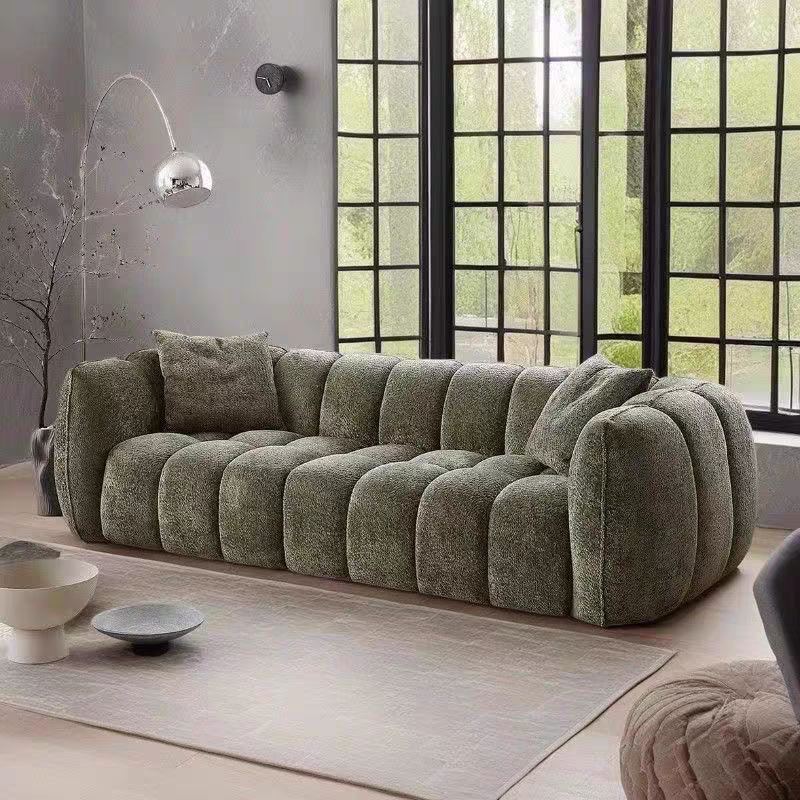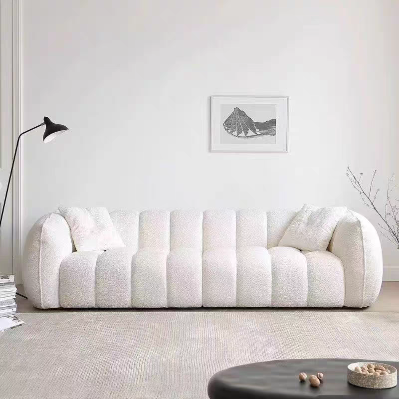Experience the ultimate in comfort and contemporary design with the Cloud Haven Sofa Collection. Featuring a plush, oversized silhouette with deep, channel-tufted upholstery, this modern lounge sofa blends luxury with functionality. Upholstered in ultra-soft boucle fabric, it offers a cozy yet sophisticated look that elevates any living space.