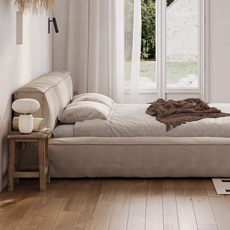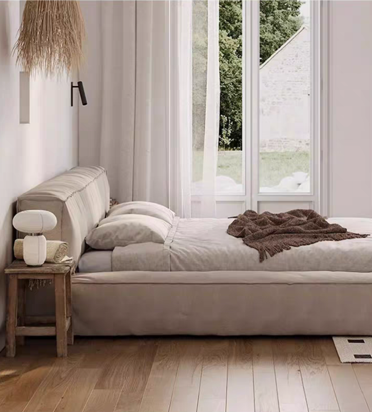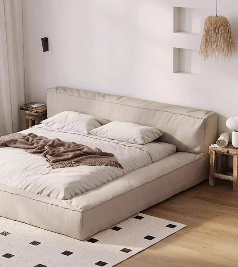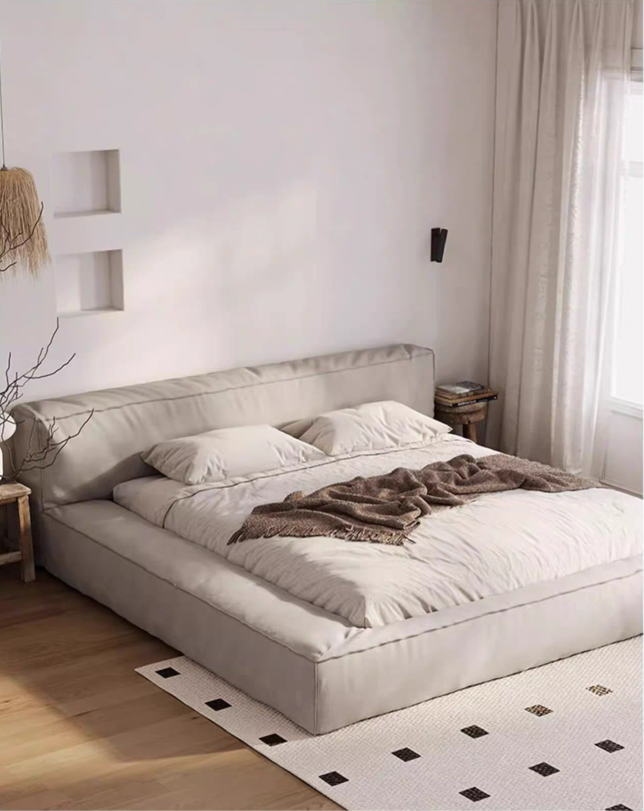 Experience the perfect blend of comfort and modern elegance with the CloudNest Minimalist Bed Frame. This low-profile, Japanese-inspired platform bed features soft, fully upholstered edges and a generously padded headboard for ultimate relaxation. The neutral beige tone complements any interior style—from Scandinavian to modern rustic. Crafted with high-density cushioning and durable fabric, this bed is designed for both aesthetic appeal and all-night comfort. Available in multiple sizes and colors to suit your space. Transform your bedroom into a serene retreat with the cozy, contemporary charm of CloudNest.