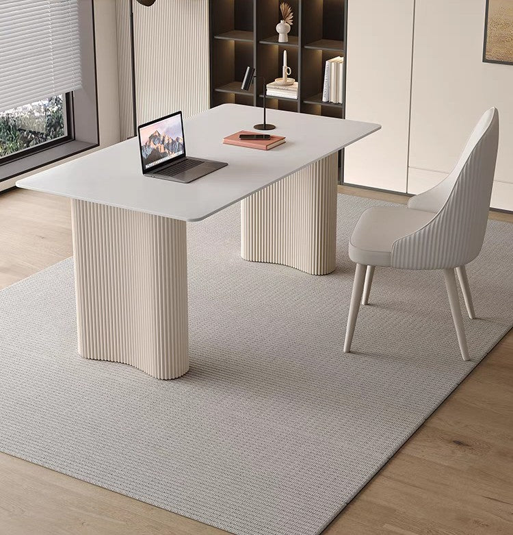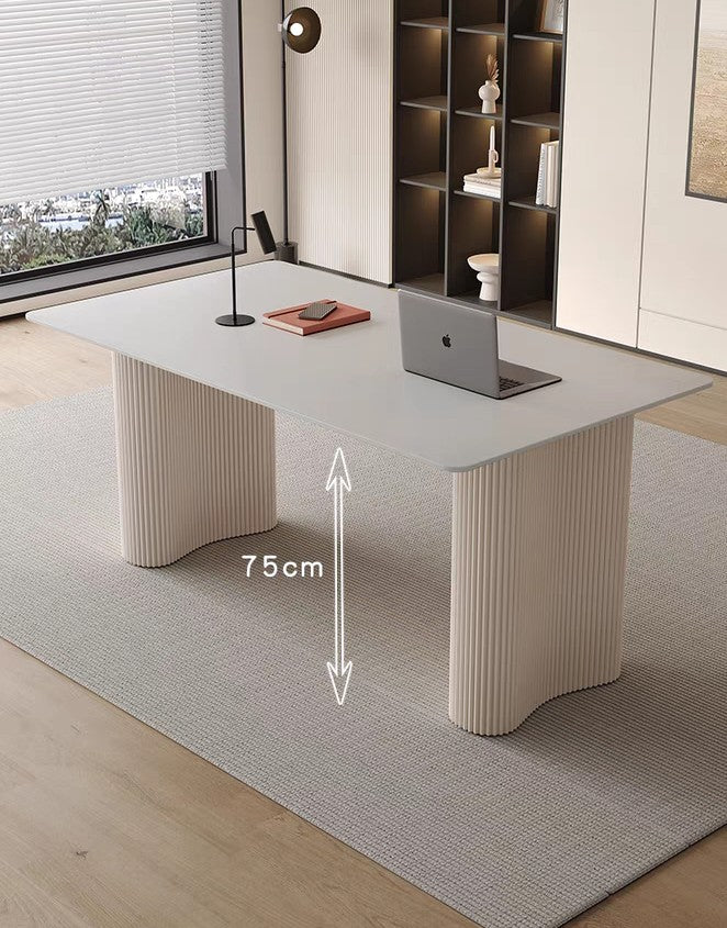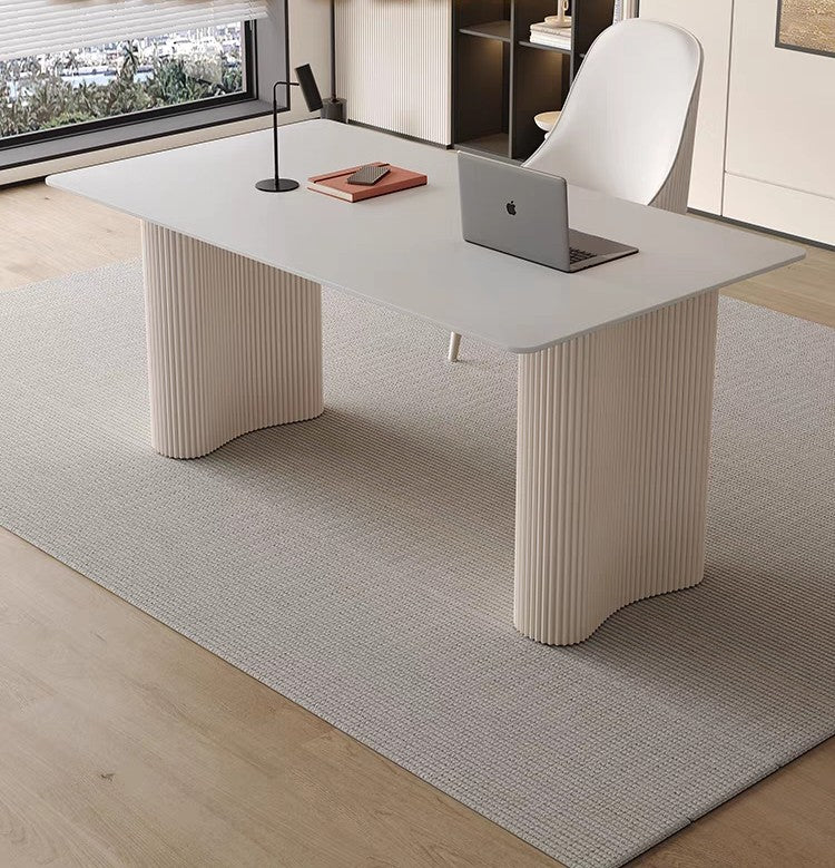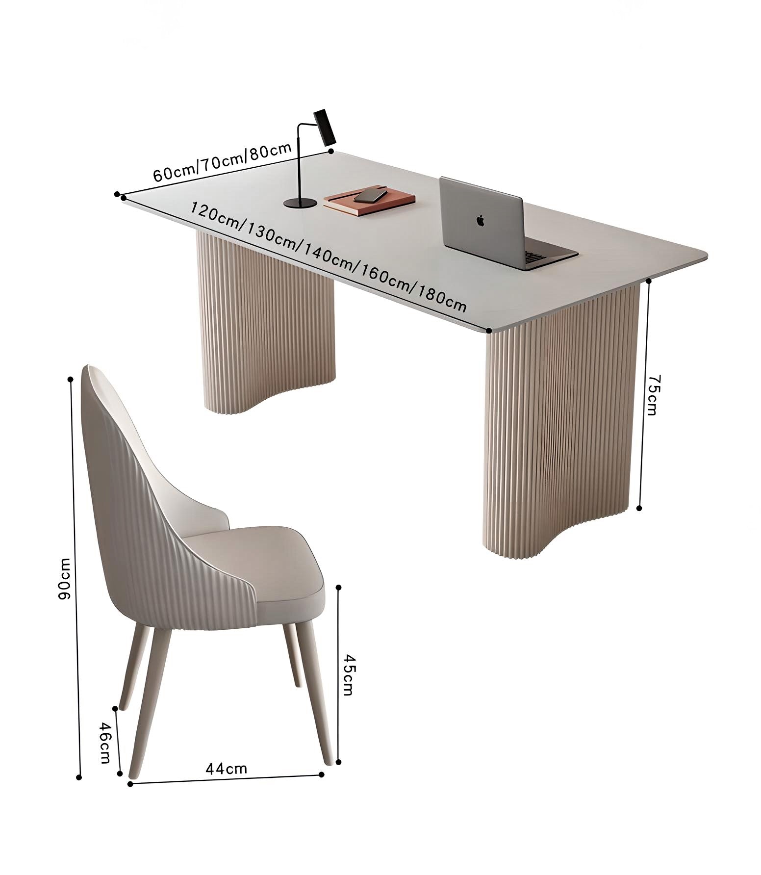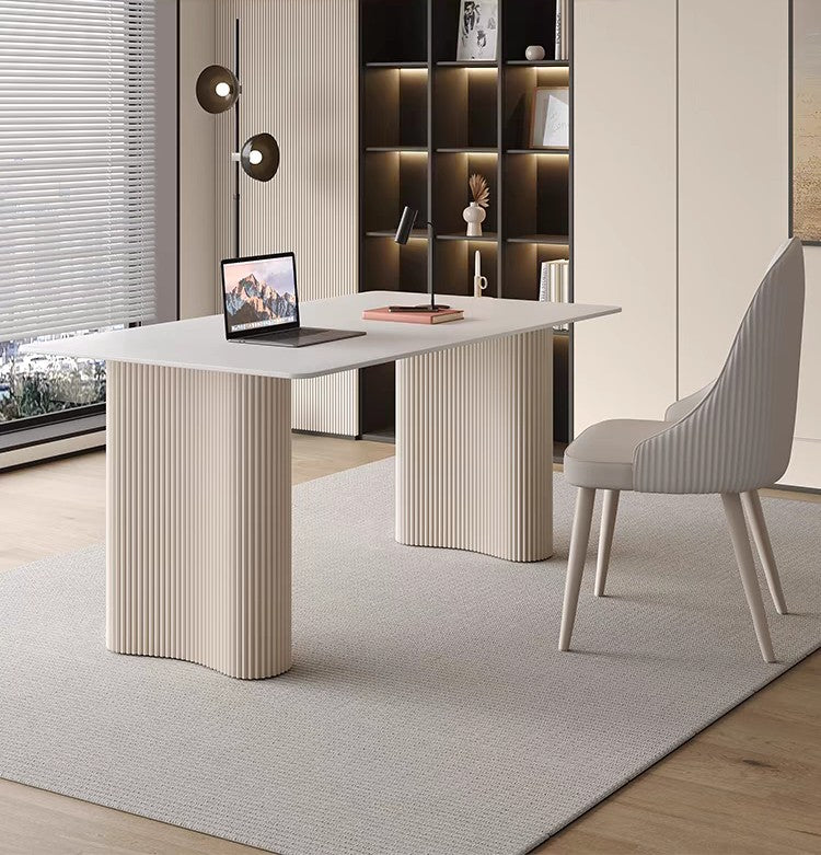 The “Columnar Elegance Desk” – where functionality meets artistry. Crafted for the contemporary professional, this statement piece transforms any room into a haven of creativity and efficiency. With its striking ribbed cylindrical legs and pristine white finish, it exudes sophistication that stands out in any decor. The spacious tabletop provides ample room for your ideas to unfold, while the sturdy design ensures lasting durability.