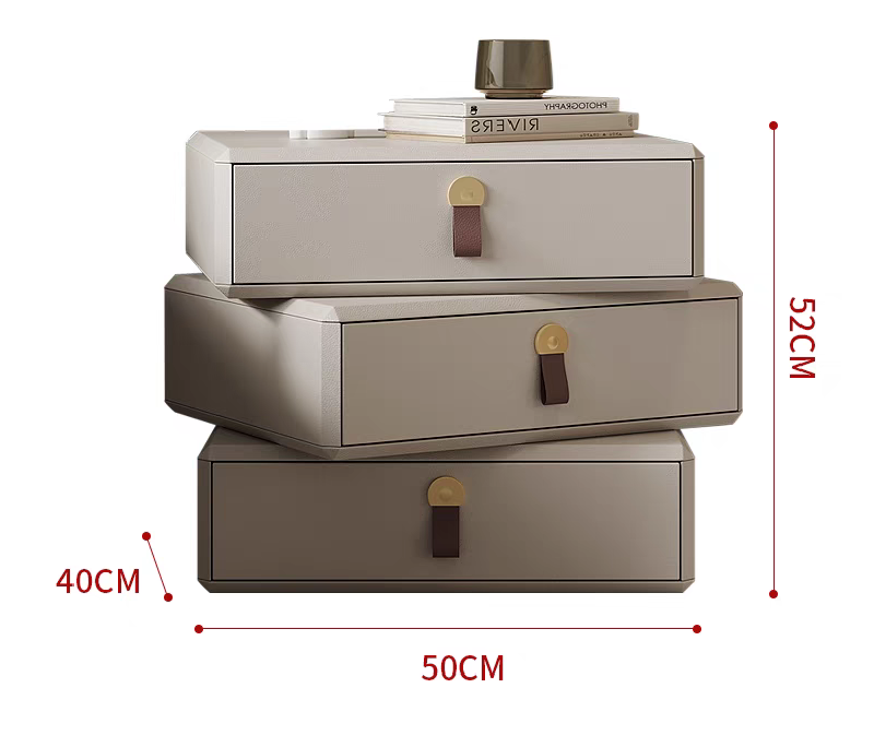 Enhance your bedroom with the Eclipse Luxe Nightstand, a modern and sophisticated storage solution that seamlessly blends style and functionality. Designed with a unique stacked drawer layout, this nightstand features a combination of premium wood grain and sleek matte finishes, creating a stunning visual contrast. The soft-close drawers provide ample storage for your essentials, while the gold-accented leather pull handles add a touch of elegance.