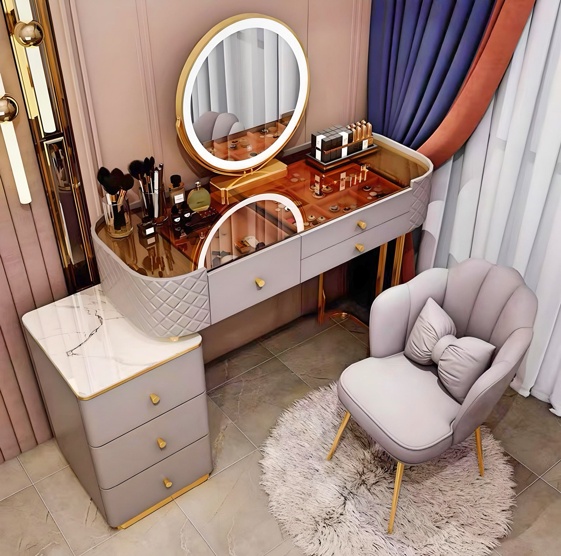Discover the epitome of elegance with our meticulously crafted dressing table. Designed for the modern individual, “ The Celestial Vanity” is more than just furniture—it’s an experience.