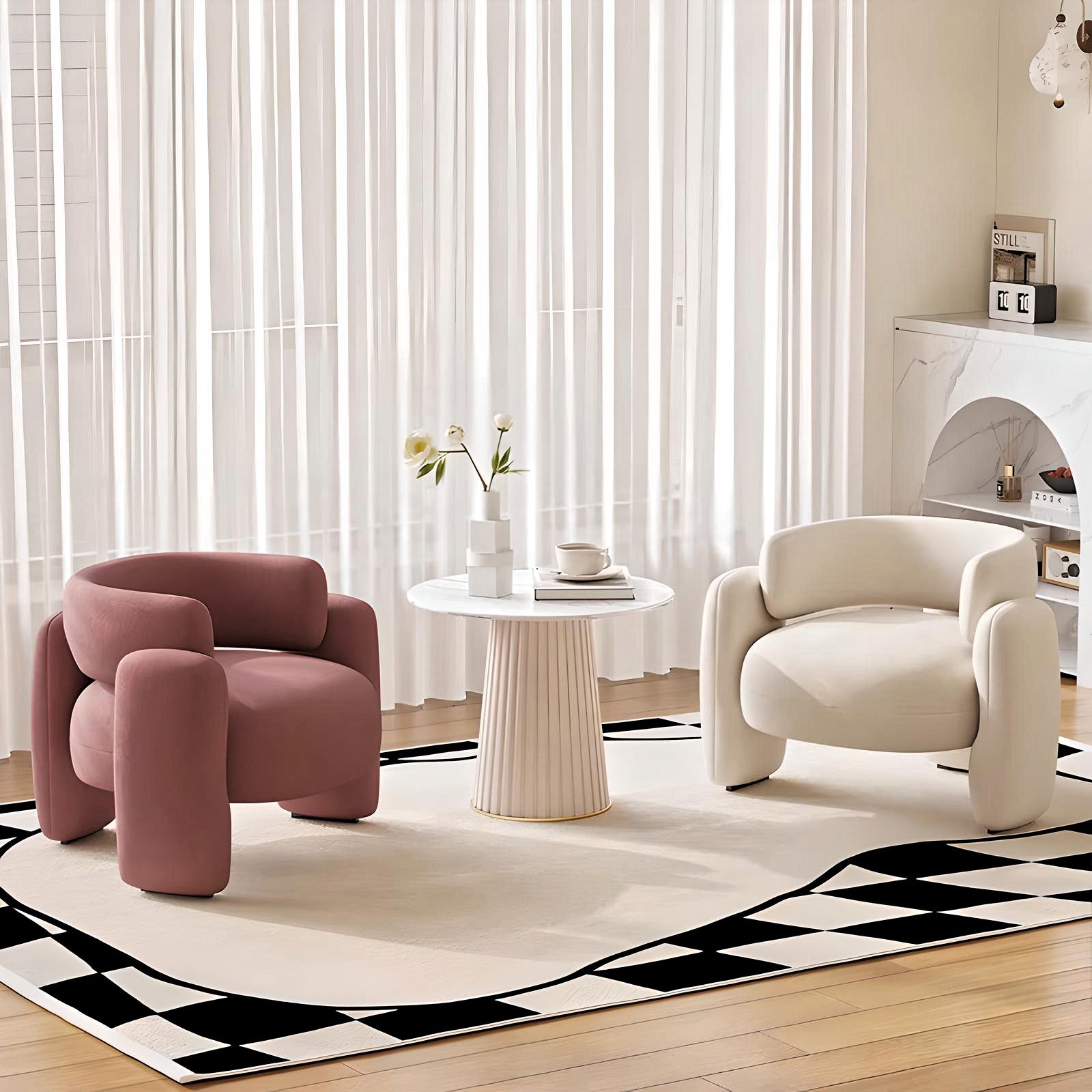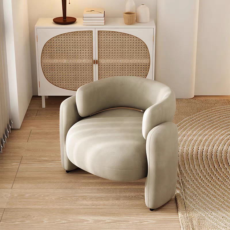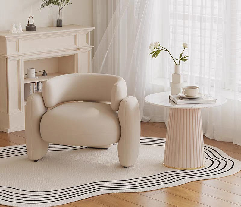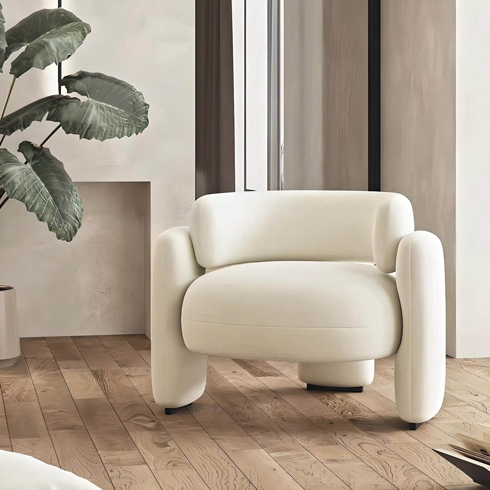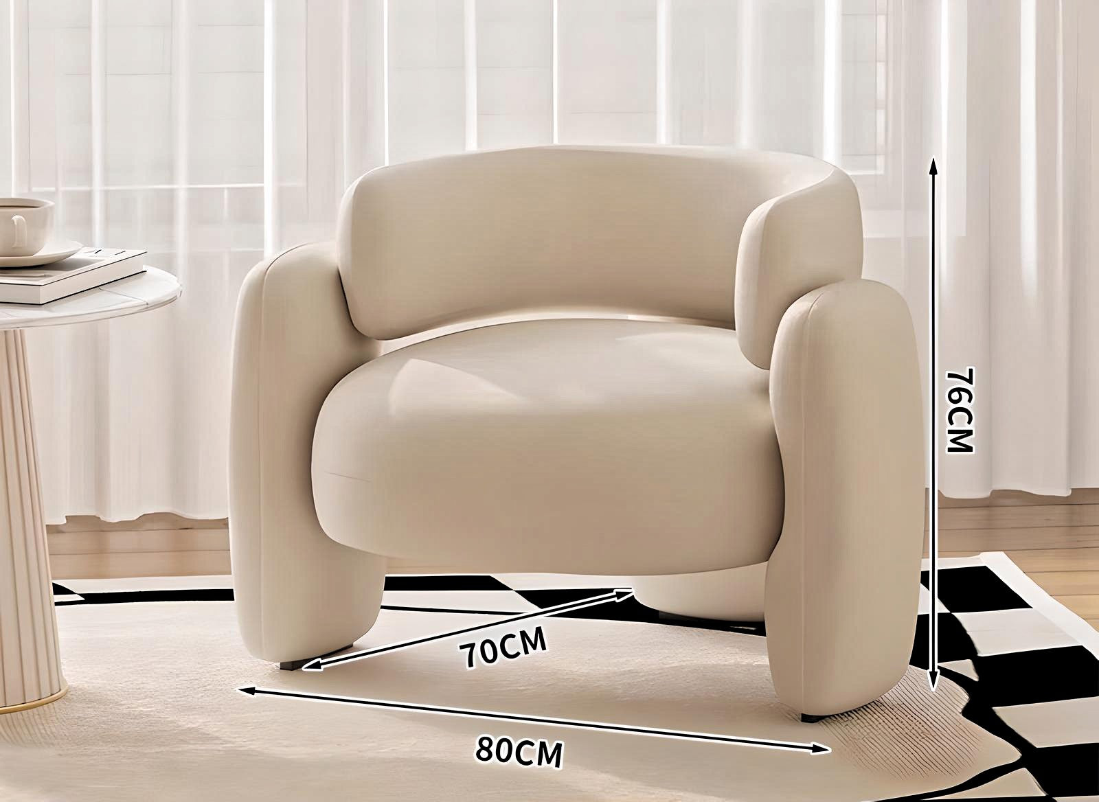Introduce modern elegance to your space with the Cloud Haven Accent Chair, a masterpiece of comfort and style. Upholstered in soft, creamy fabric, this chair features a unique rounded design with plush armrests and a cushioned seat, offering a cozy retreat. Perfect for living rooms, bedrooms, or reading nooks, this luxury accent chair blends seamlessly with contemporary, minimalist, or Scandinavian decor. Built with premium materials for durability, the Cloud Haven is your go-to choice for timeless style and relaxation. Shop now to upgrade your home with comfort and charm!