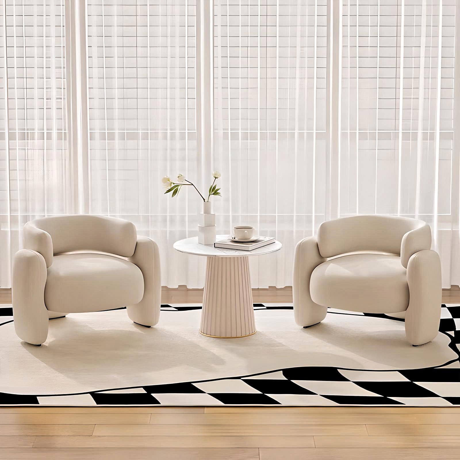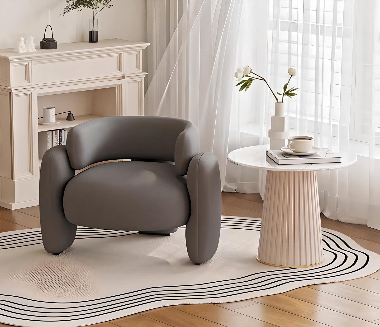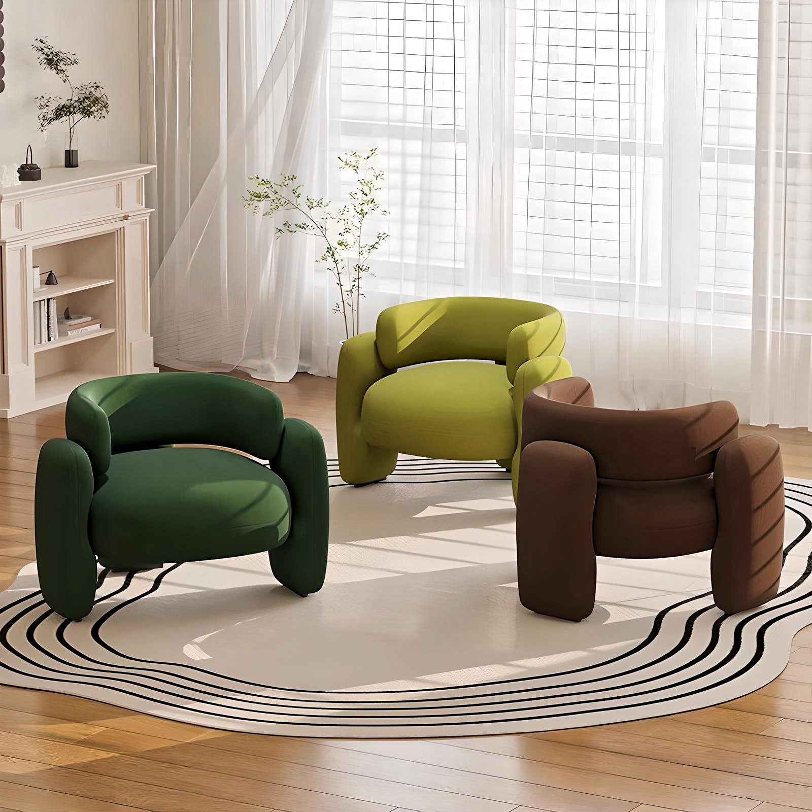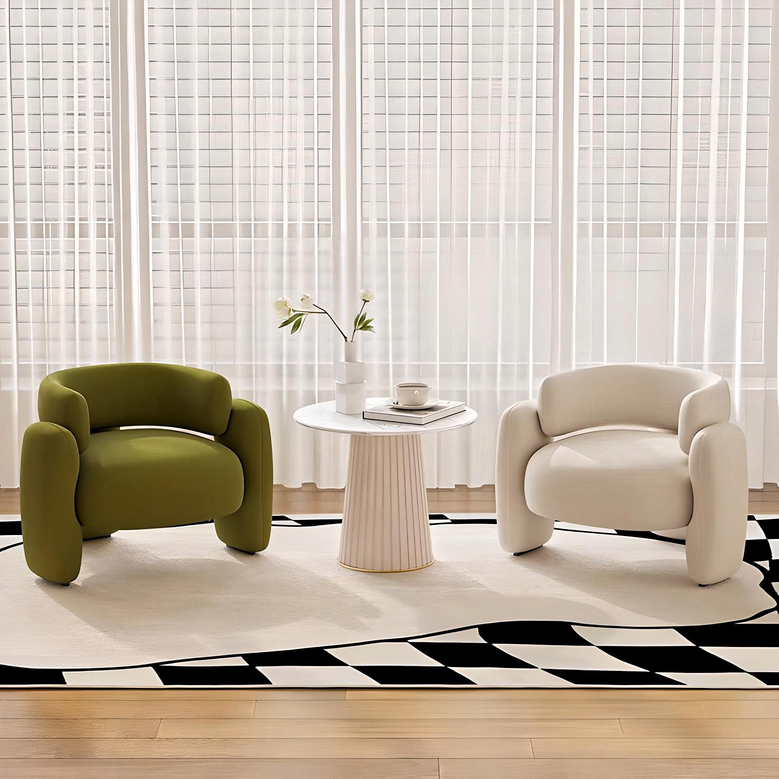 Introduce modern elegance to your space with the Cloud Haven Accent Chair, a masterpiece of comfort and style. Upholstered in soft, creamy fabric, this chair features a unique rounded design with plush armrests and a cushioned seat, offering a cozy retreat. Perfect for living rooms, bedrooms, or reading nooks, this luxury accent chair blends seamlessly with contemporary, minimalist, or Scandinavian decor. Built with premium materials for durability, the Cloud Haven is your go-to choice for timeless style and relaxation. Shop now to upgrade your home with comfort and charm!