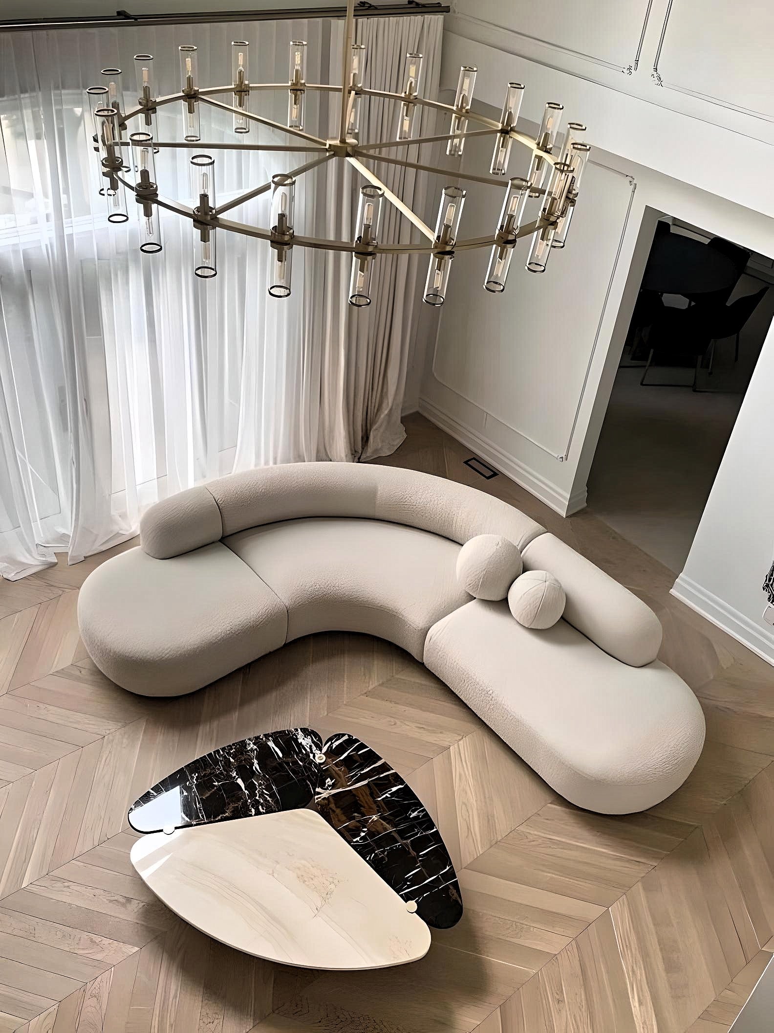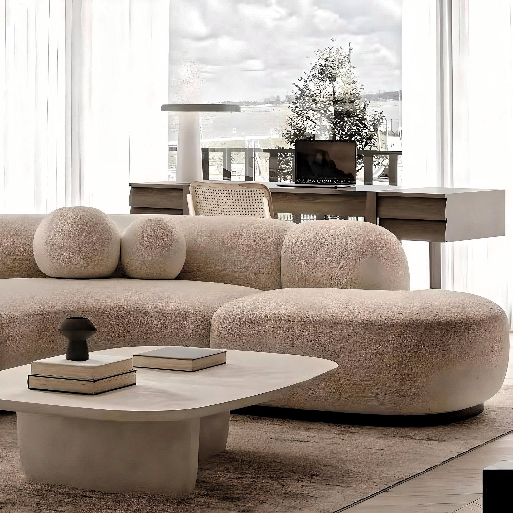 The Elysian Comfort sofa embodies the epitome of modern luxury and elegance. Designed with a smooth, flowing silhouette, this sofa enhances any contemporary living space with its refined aesthetic. Upholstered in premium teddy velvet, the Elysian Comfort offers an irresistibly soft texture that invites relaxation. The sofa is crafted with high-quality technology fabric, high-density resilient sponge cushioning, and a solid wood frame, ensuring long-lasting comfort and durability.