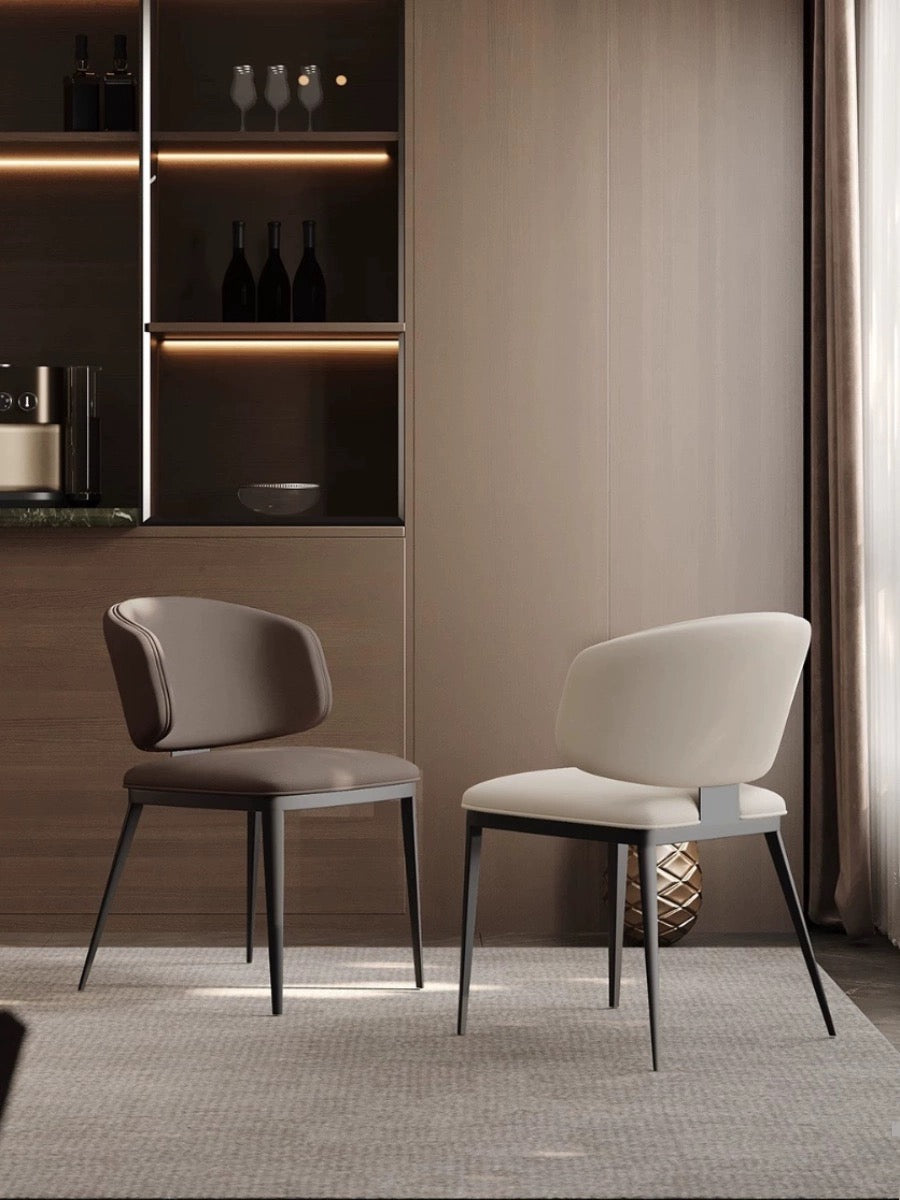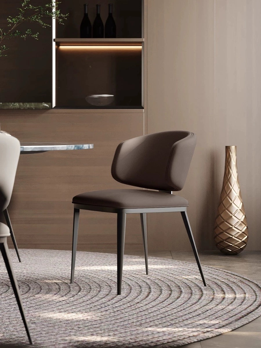 Upholstered in high-quality, durable fabric or eco-leather, the chair offers a luxurious feel while being easy to maintain. The sturdy metal legs provide stability and a modern aesthetic.