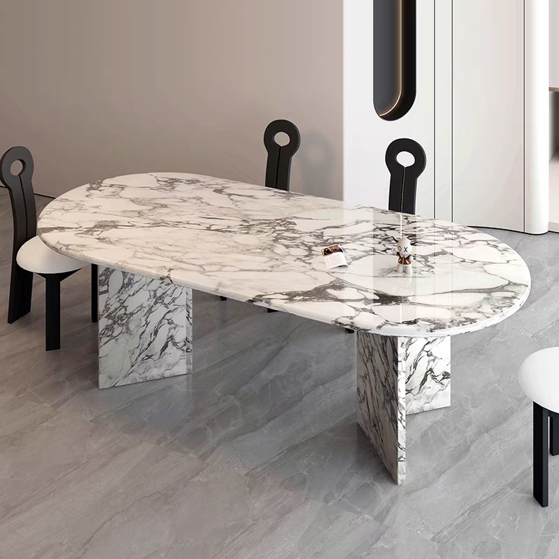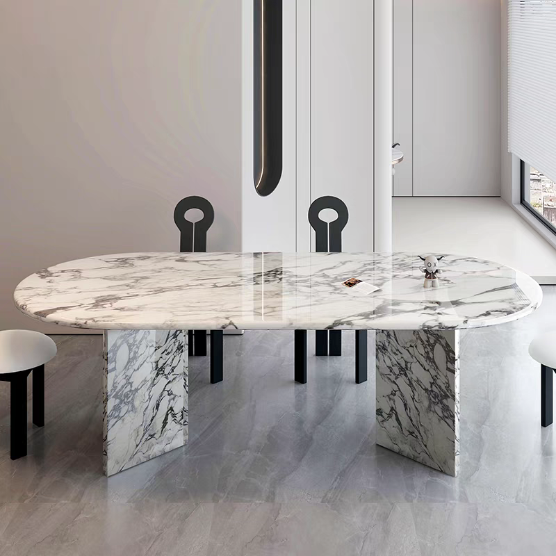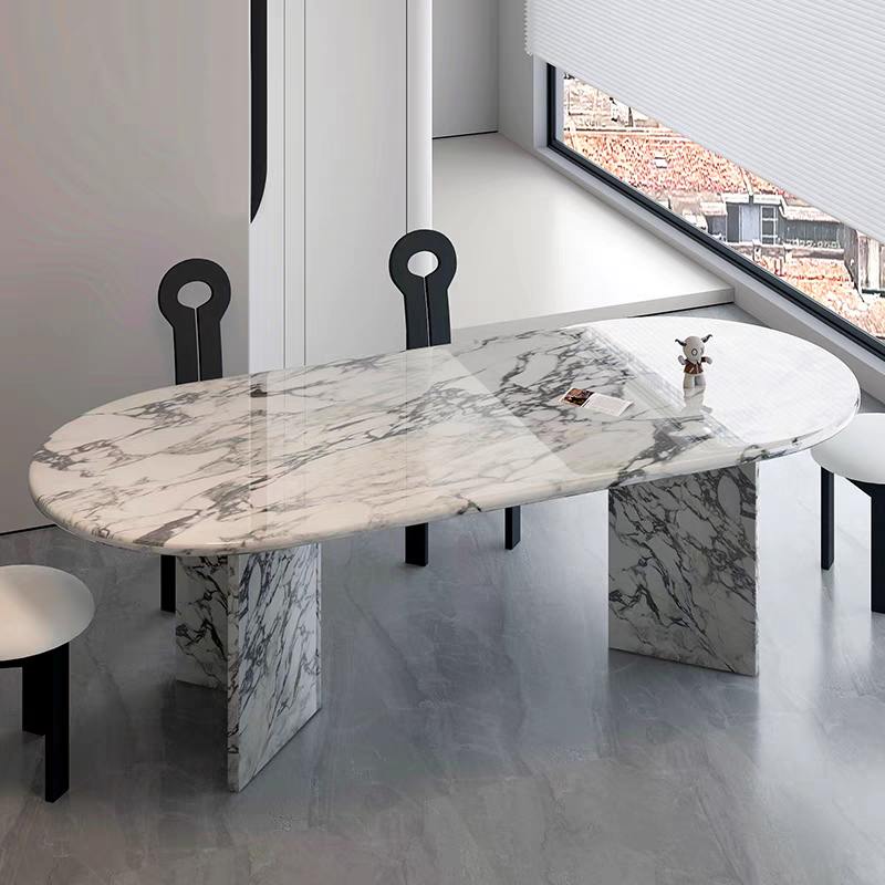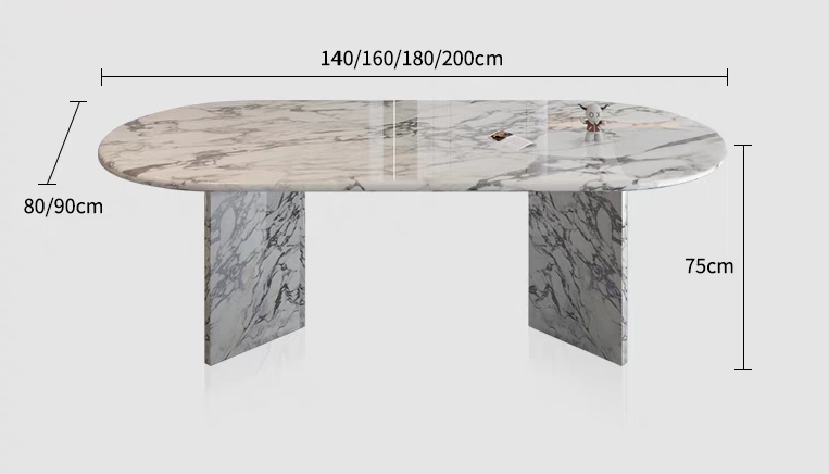 Elevate your dining experience with the Eterna Luxe Marble Dining Table. Crafted from premium marble with elegant natural veining, this stunning oval table combines timeless sophistication with modern minimalism. The sturdy dual-pillar base ensures durability, while the polished surface adds a touch of luxury to any space. Available in multiple sizes (140/160/180/200cm) and widths (80/90cm), with a standard height of 75cm, it’s perfect for both family gatherings and stylish dinner parties. Add a statement piece to your home with this exquisite marble dining table—where elegance meets functionality.