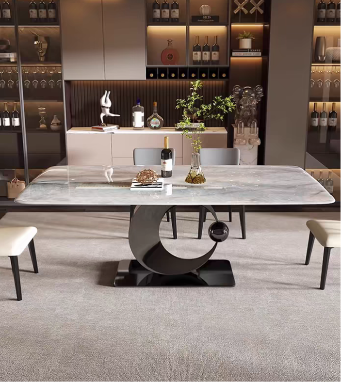 The Luna Elegance Glass Dining Table – where timeless sophistication meets modern design. Crafted with meticulous attention to detail, this stunning piece features an exquisite glass top that seems to float above its lustrous crescent base. Perfect for those who appreciate fine wines and finer company, the Luna Elegance is more than just furniture; it’s a centerpiece that brings people together in style. Elevate your dining experience and impress your guests with this breathtaking addition to your home décor collection.”