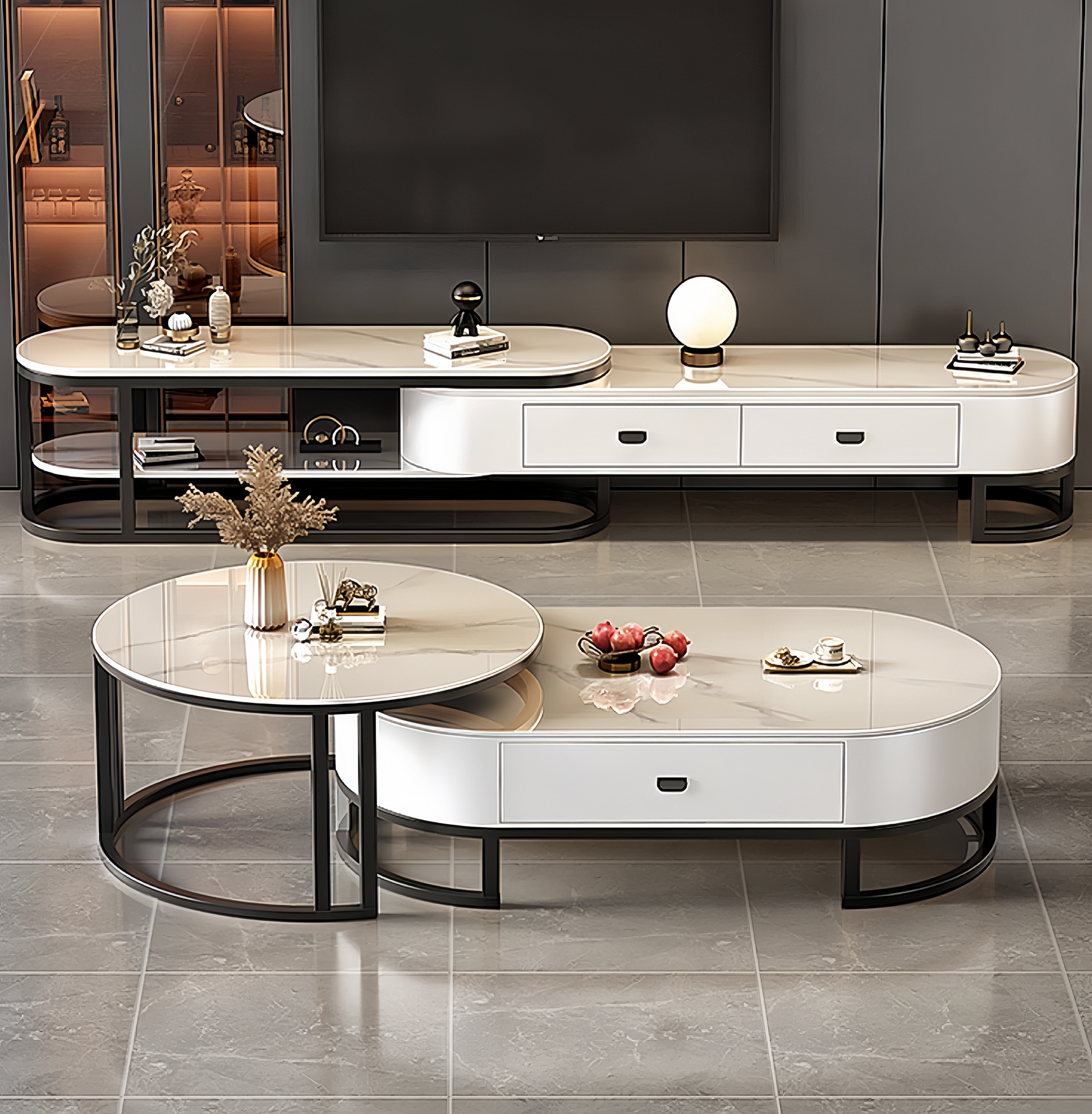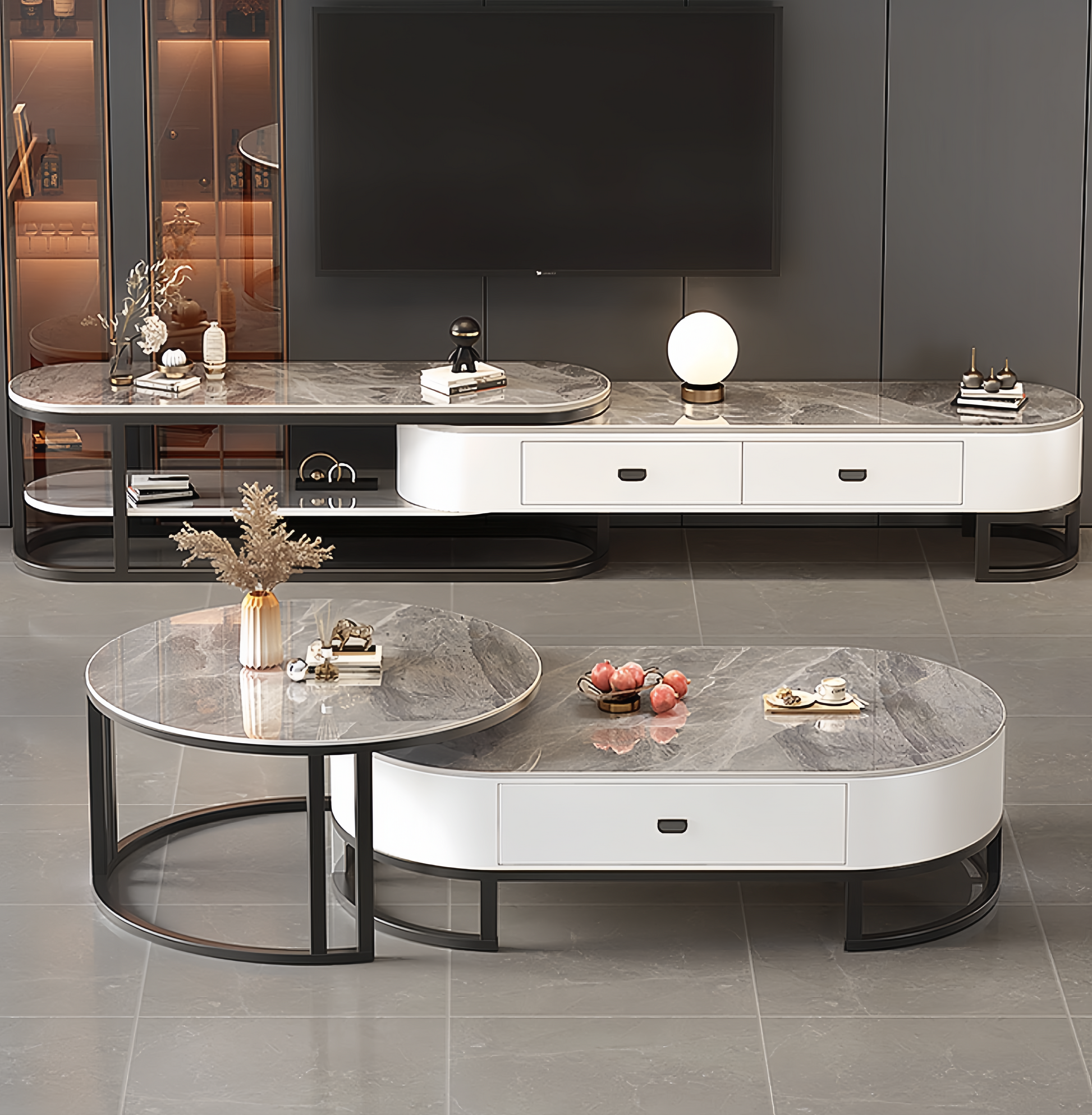 Enter a realm of contemporary elegance and functionality with the Luxe Horizon Collection. This stunning ensemble, featuring a sleek marble-top coffee table and a sophisticated TV entertainment unit, transforms any living room into a sanctuary of modern luxury. The coffee table’s elegant dark trim and streamlined design make it more than just a functional piece; it’s an artful centerpiece that balances style with practicality.