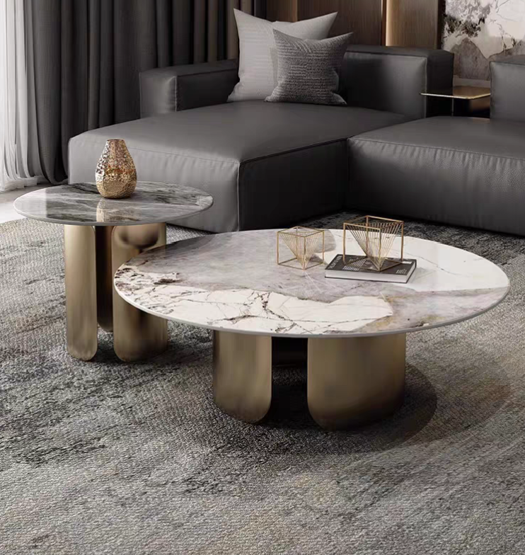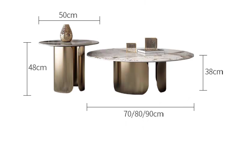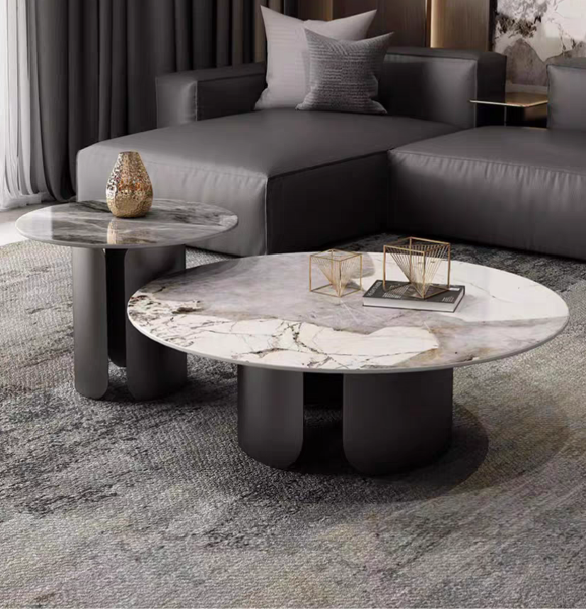 Elevate your living space with the LuxeVine Marble Coffee Table Set – a perfect blend of modern elegance and timeless design. Featuring luxurious marble tops with unique veining patterns and sturdy, sculptural metal bases available in classic black and sophisticated gold finishes, this set is ideal for contemporary interiors. The set includes a large coffee table (70/80/90cm diameter, 38cm height) and a matching side table (50cm diameter, 48cm height), offering versatile functionality and style. Ideal for displaying decor, serving guests, or simply enhancing your living room aesthetic. Available in multiple sizes and colors to suit your decor needs.