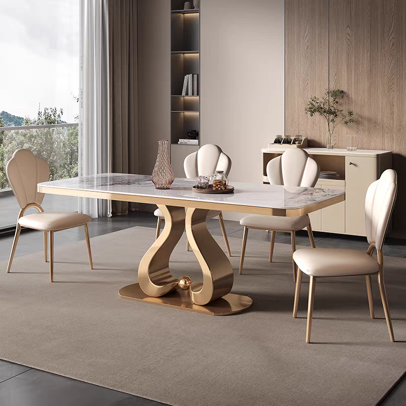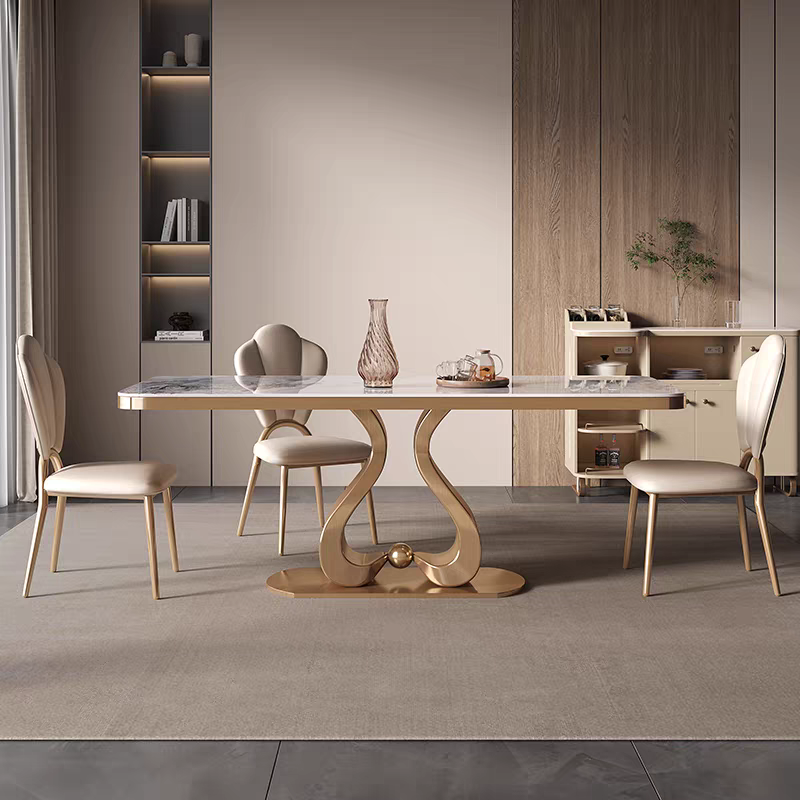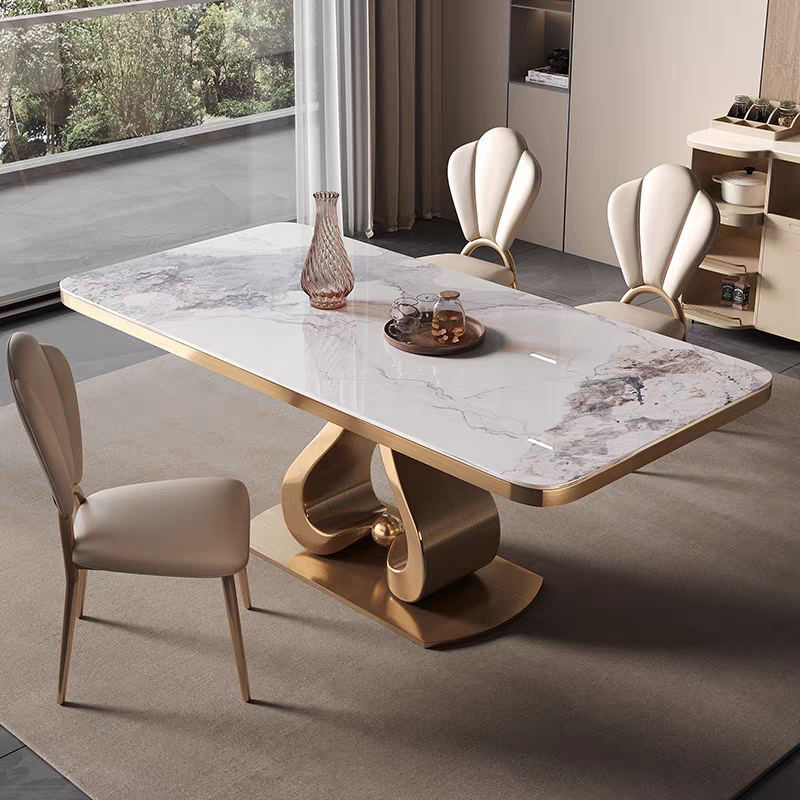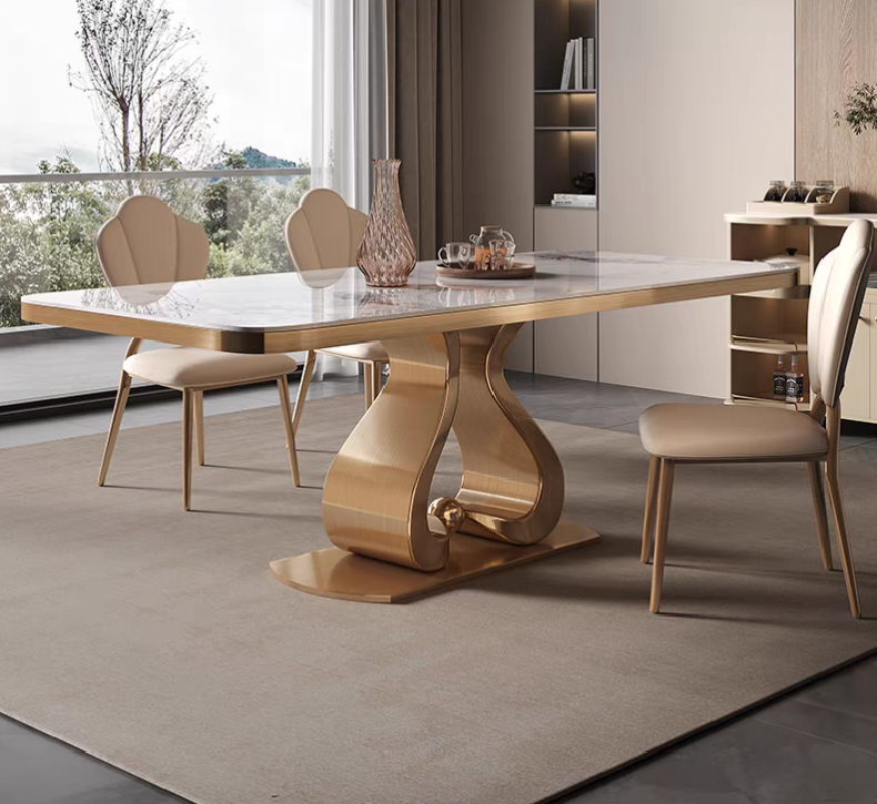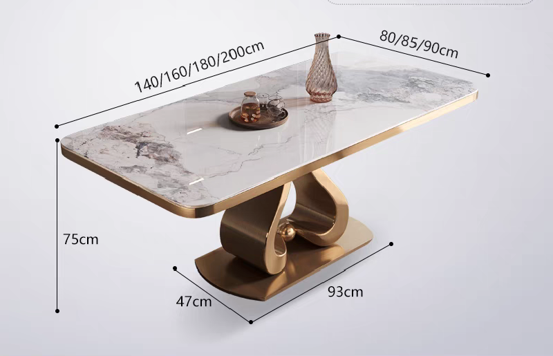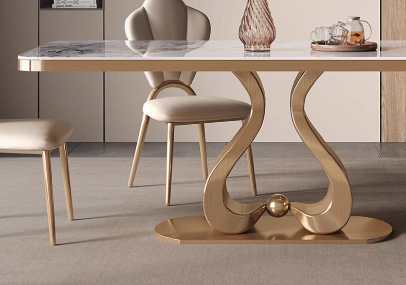 Elevate your dining experience with the LuxeWave Marble Dining Table, a stunning blend of modern elegance and timeless sophistication. Featuring a premium sintered stone tabletop with exquisite natural veining, this dining table offers exceptional heat resistance, scratch resistance, and durability for long-term use. The sculptural wave-inspired stainless steel base, available in sleek silver or luxurious gold, provides unmatched stability and a striking visual appeal.