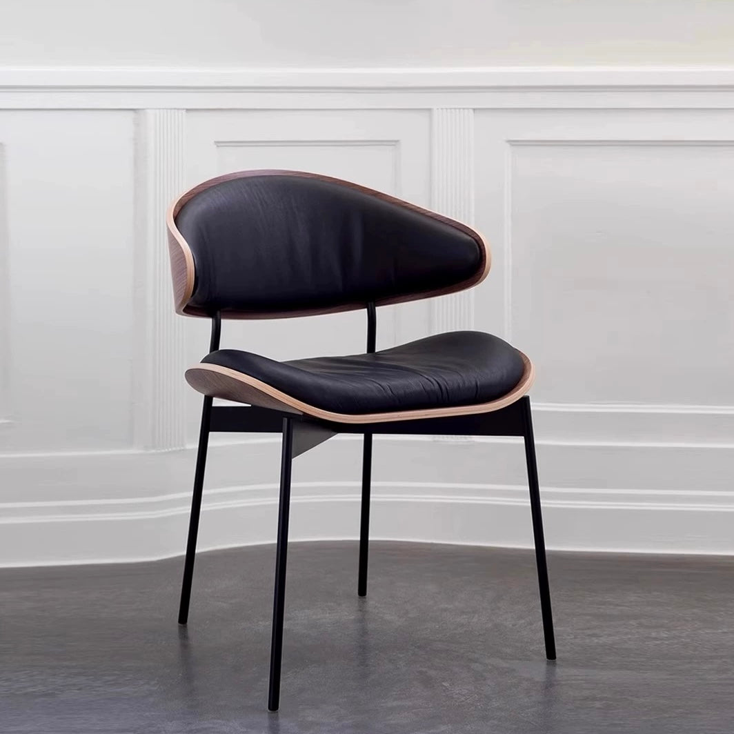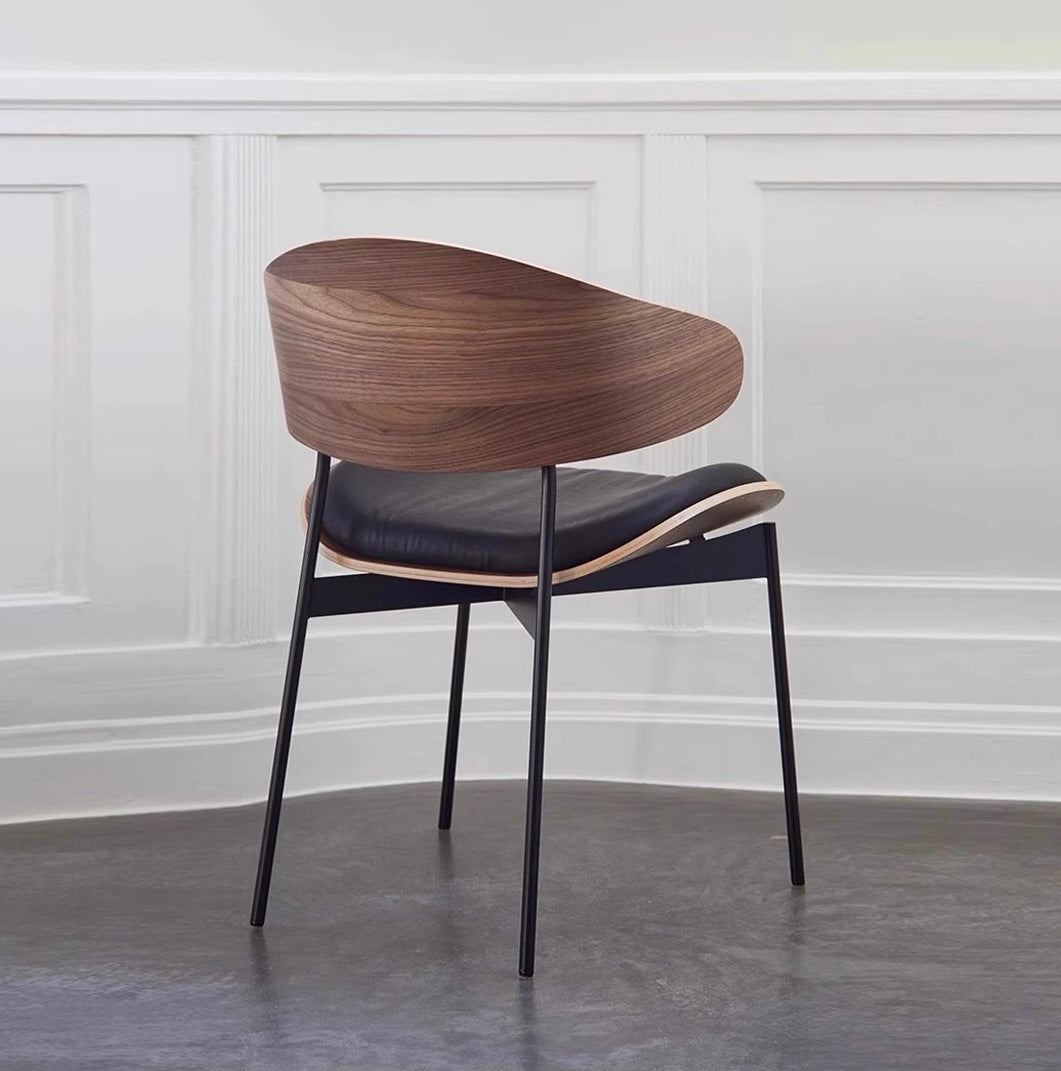 The NeoWood Elegance chair effortlessly combines the warmth of natural wood with modern minimalist design. Featuring a contoured wooden frame that embraces the soft, luxurious leather seat and backrest, this chair offers both style and comfort. Its sleek metal legs provide stability and a contemporary touch, making it an ideal addition to any sophisticated dining or work space. Available in a variety of finishes to suit any interior, the NeoWood Elegance is a timeless piece that enhances the aesthetic of any room.