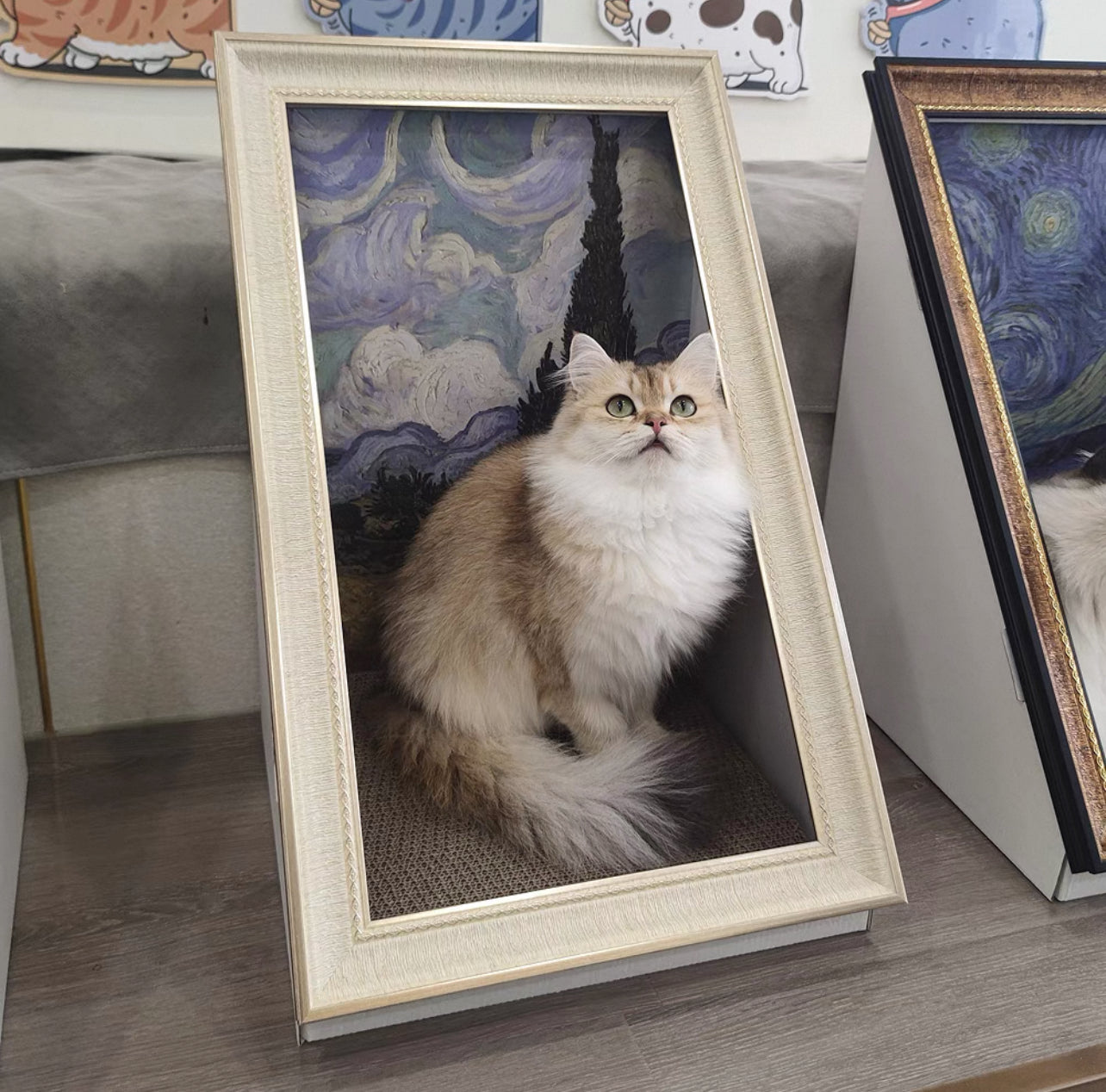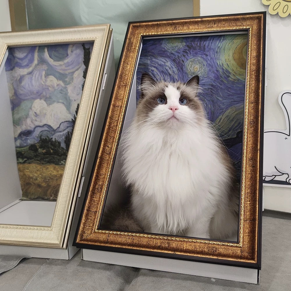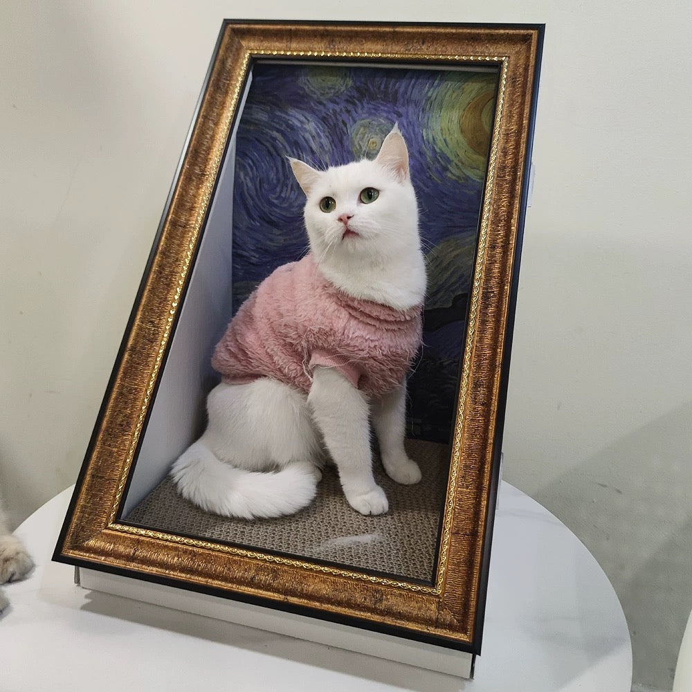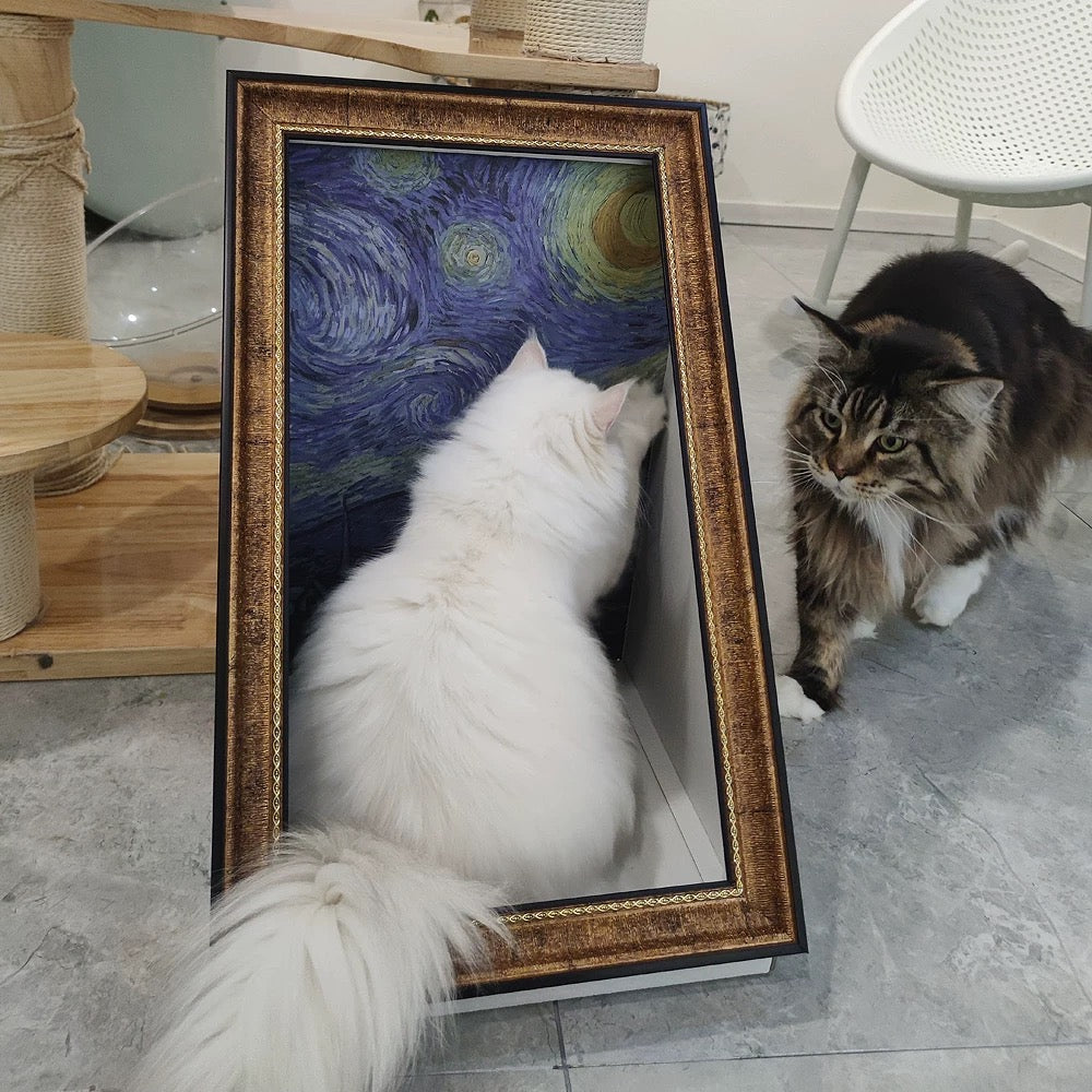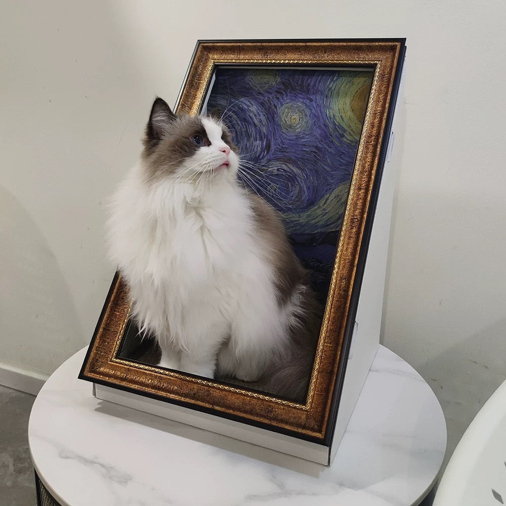 Turn your home into an art museum with the Pawtrait Gallery Framed Cat Hideaway – a perfect blend of cat furniture and iconic masterpieces like The Starry Night, Mona Lisa, and Monet’s Garden. This artistic cat bed transforms classic paintings into cozy, enclosed nooks, creating a unique space where your feline friend becomes part of the artwork.