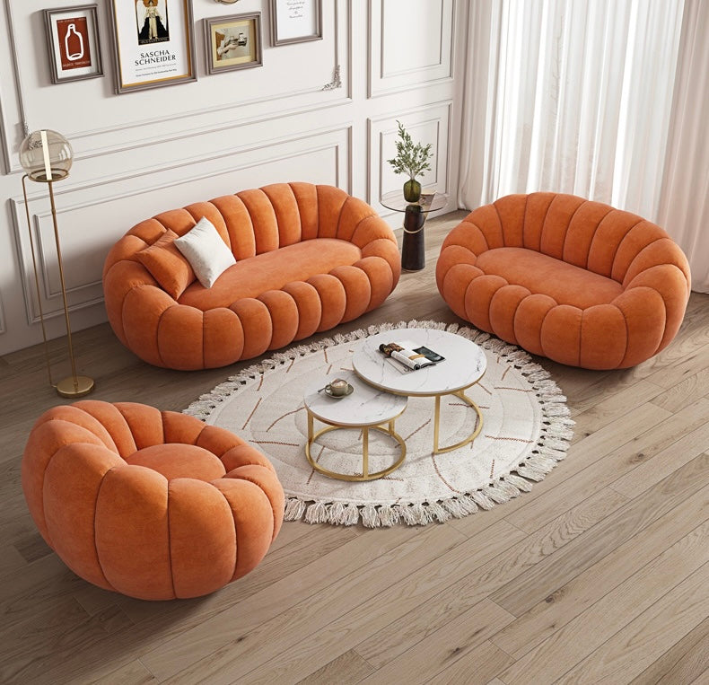 Design: Expanding on the chair’s design, the sofa offers ample seating space with the same luxurious fabric and colors. It is ideal for larger living rooms, creating a cohesive and inviting seating area.