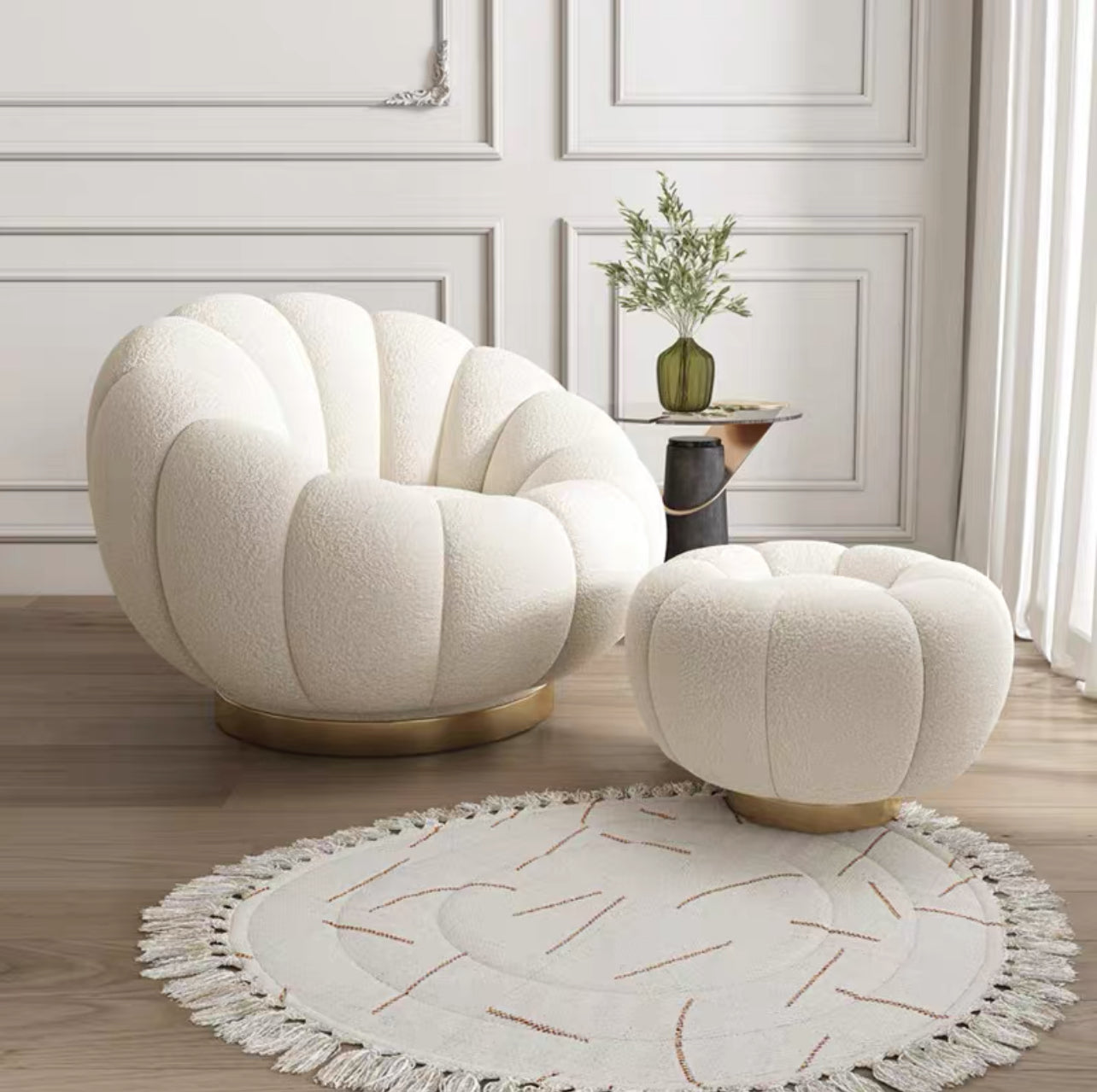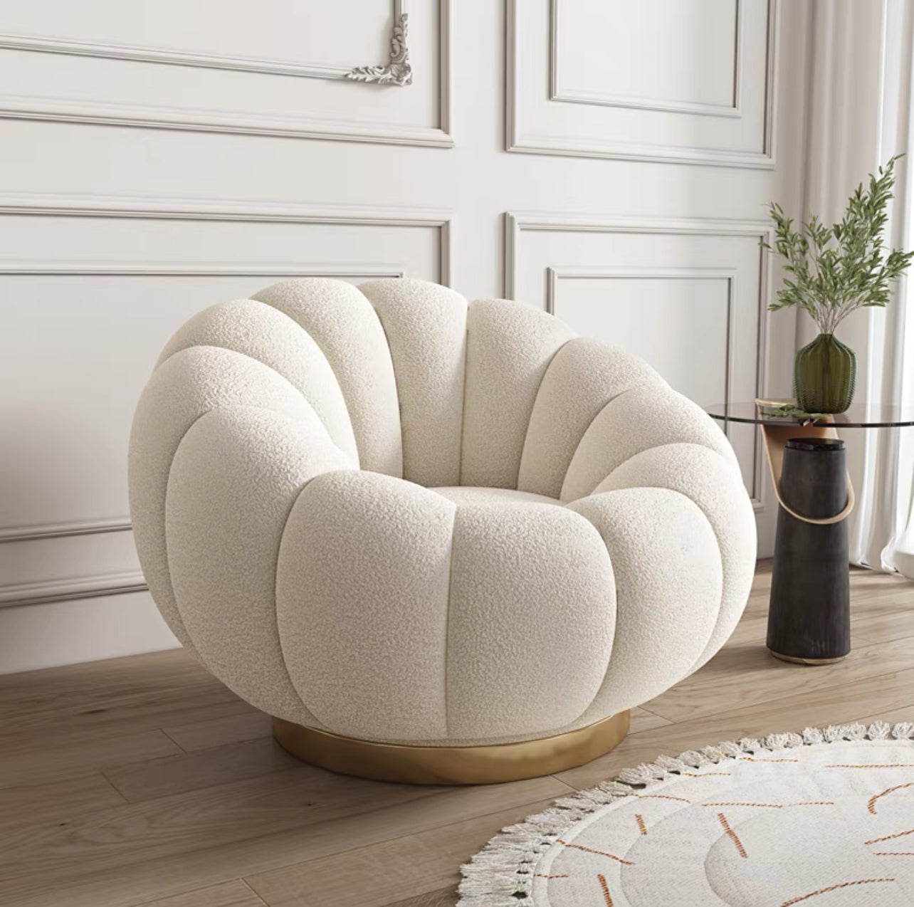 Design: Upholstered in a soft, textured fabric, the chair features a puffy, cloud-like structure that cradles the body. Available in a variety of colors including creamy white, pastel pink, and mint green, it adds a playful yet sophisticated touch to your room.