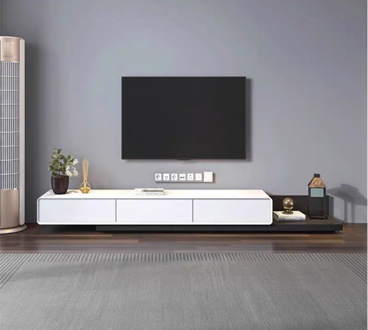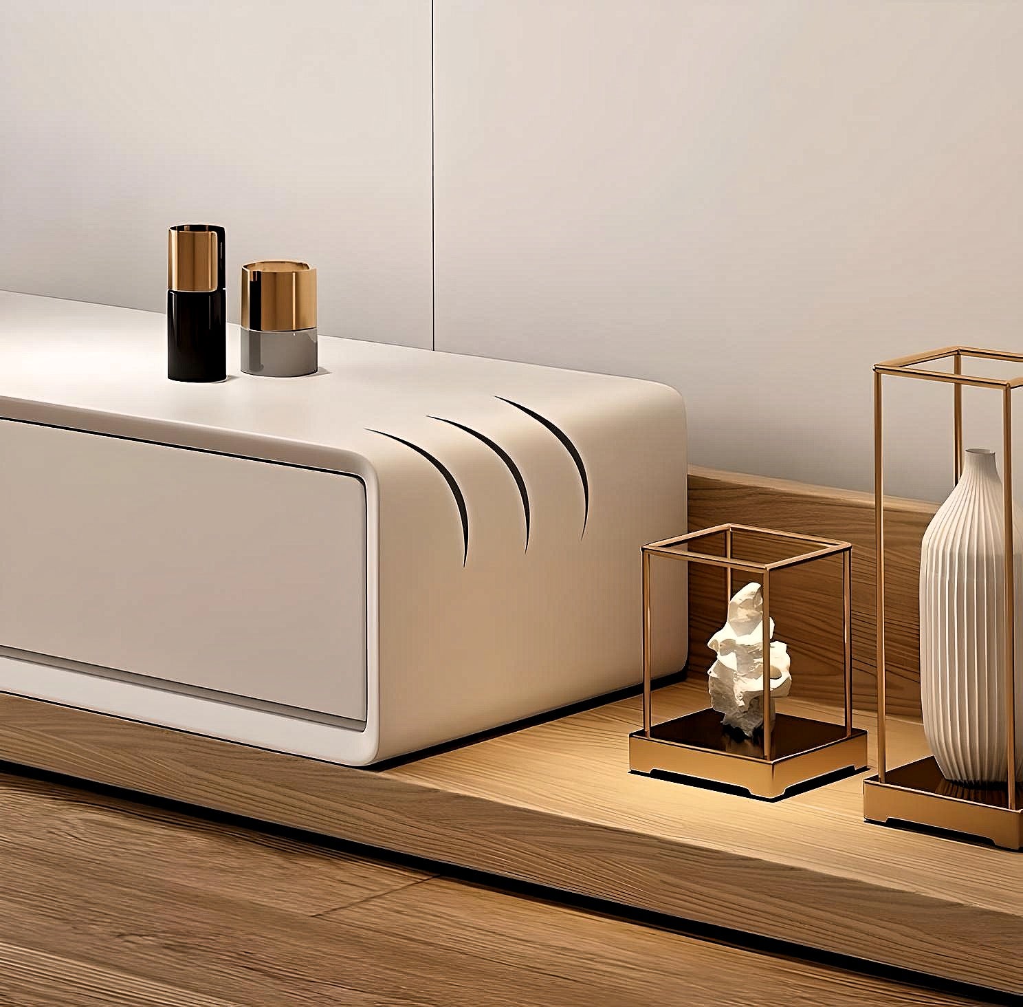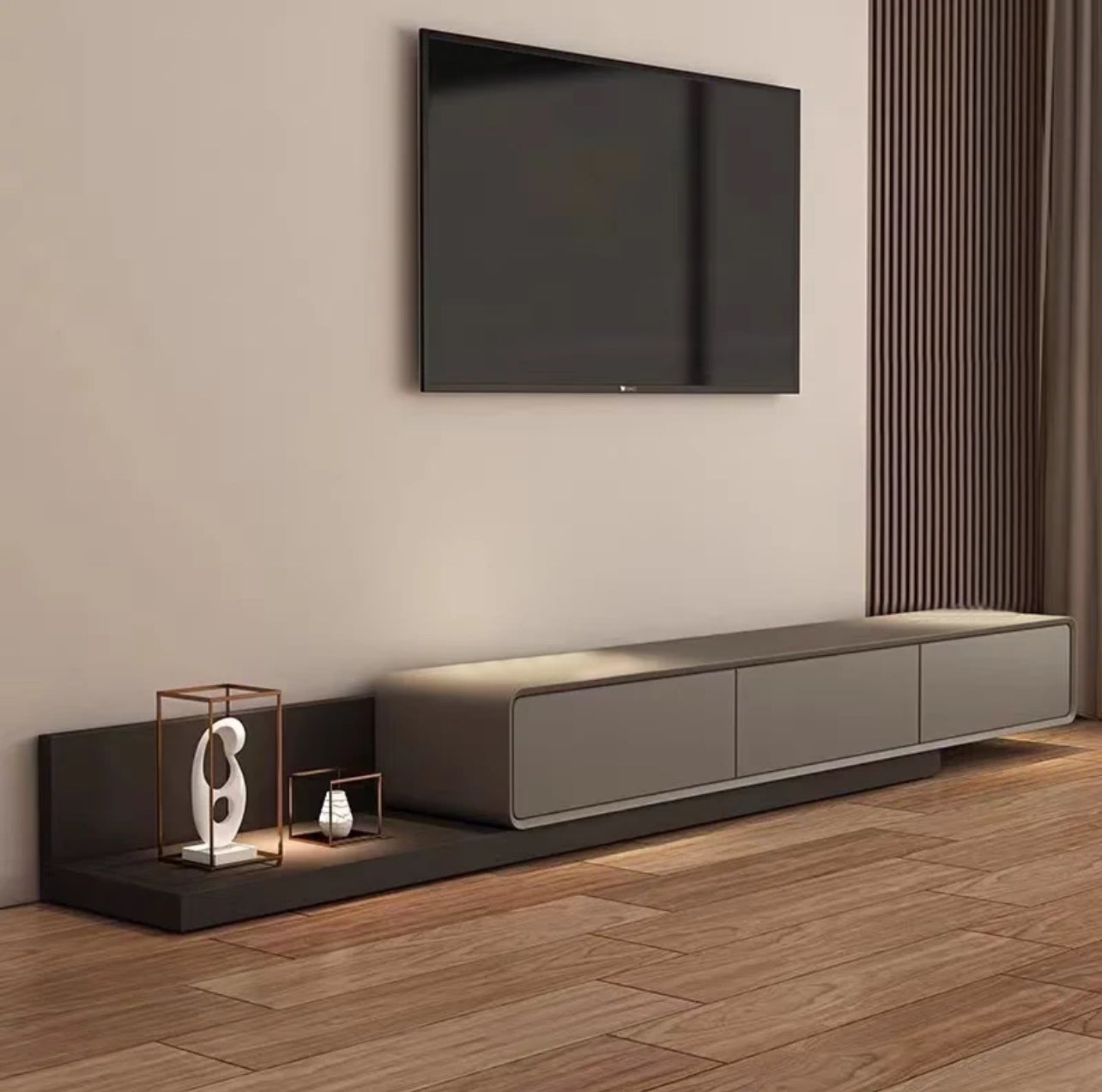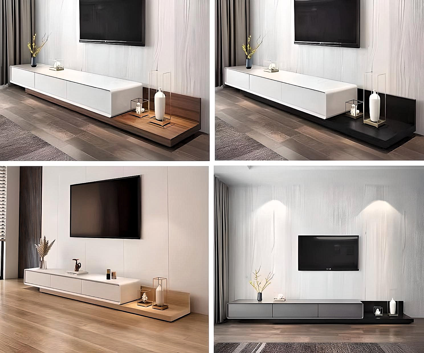 This beautifully designed unit features a sleek, modern aesthetic with clean lines and a minimalist approach, making it a stunning addition to any contemporary living space. The adjustable length ensures a seamless fit in rooms of all sizes, while the smooth sliding mechanism allows for effortless customization. Crafted with premium materials, the "Serenity Slide" offers generous storage with its well-designed drawers, keeping your media essentials neatly organized. Enhance your home entertainment setup with this sophisticated and versatile piece, designed to bring a touch of serenity and style to your decor.