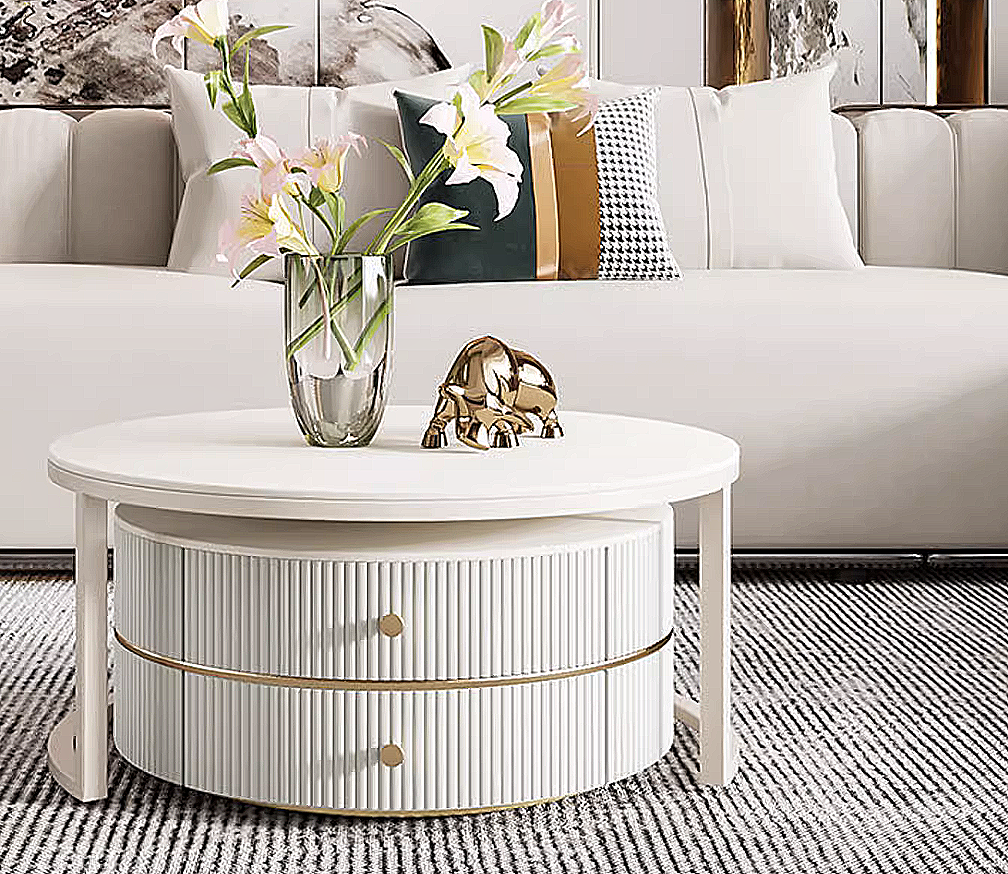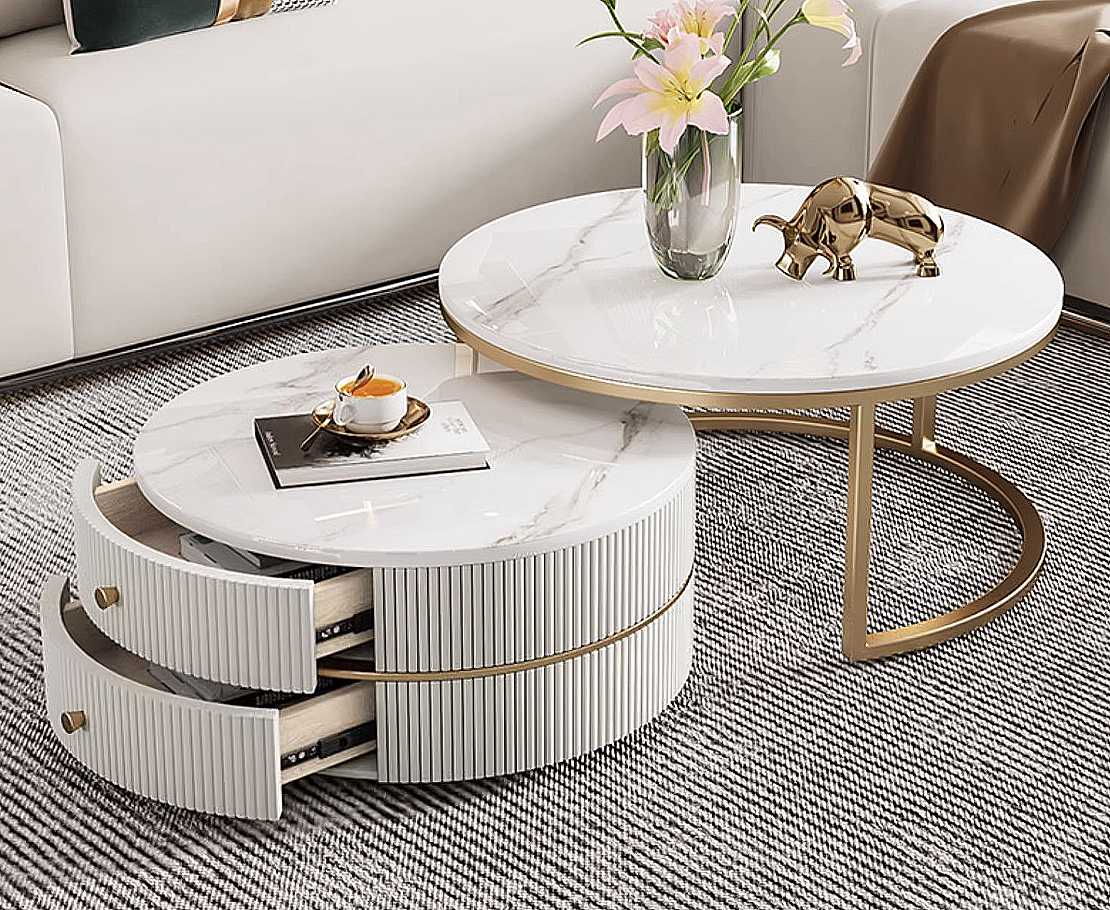 Designed to complement contemporary decor, the Serenity Swivel Coffee Table is finished with refined metallic accents and smooth surfaces that evoke luxury and tranquility. The lower tier provides additional space for decor or more storage, making this coffee table as versatile as it is beautiful. Perfect for small spaces or minimalist homes, this piece seamlessly combines aesthetic appeal with ample storage solutions, helping you maintain a clean and organized environment.