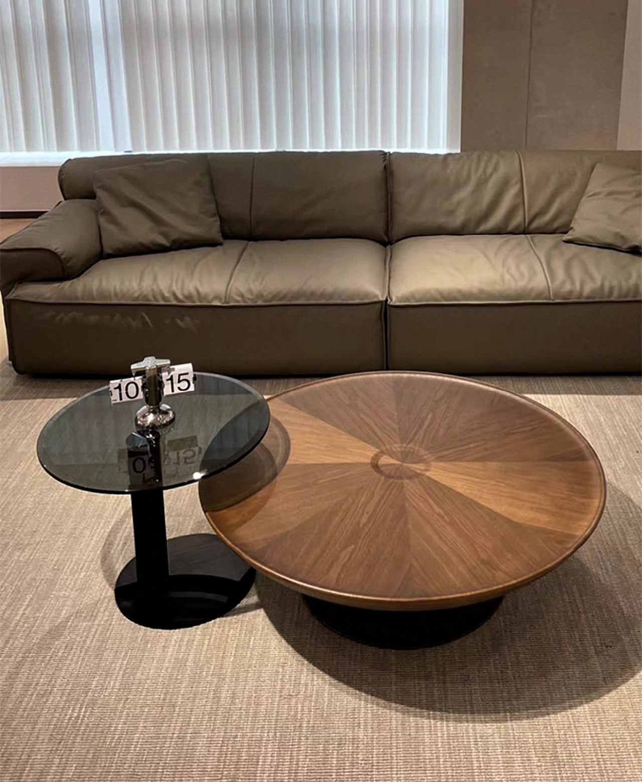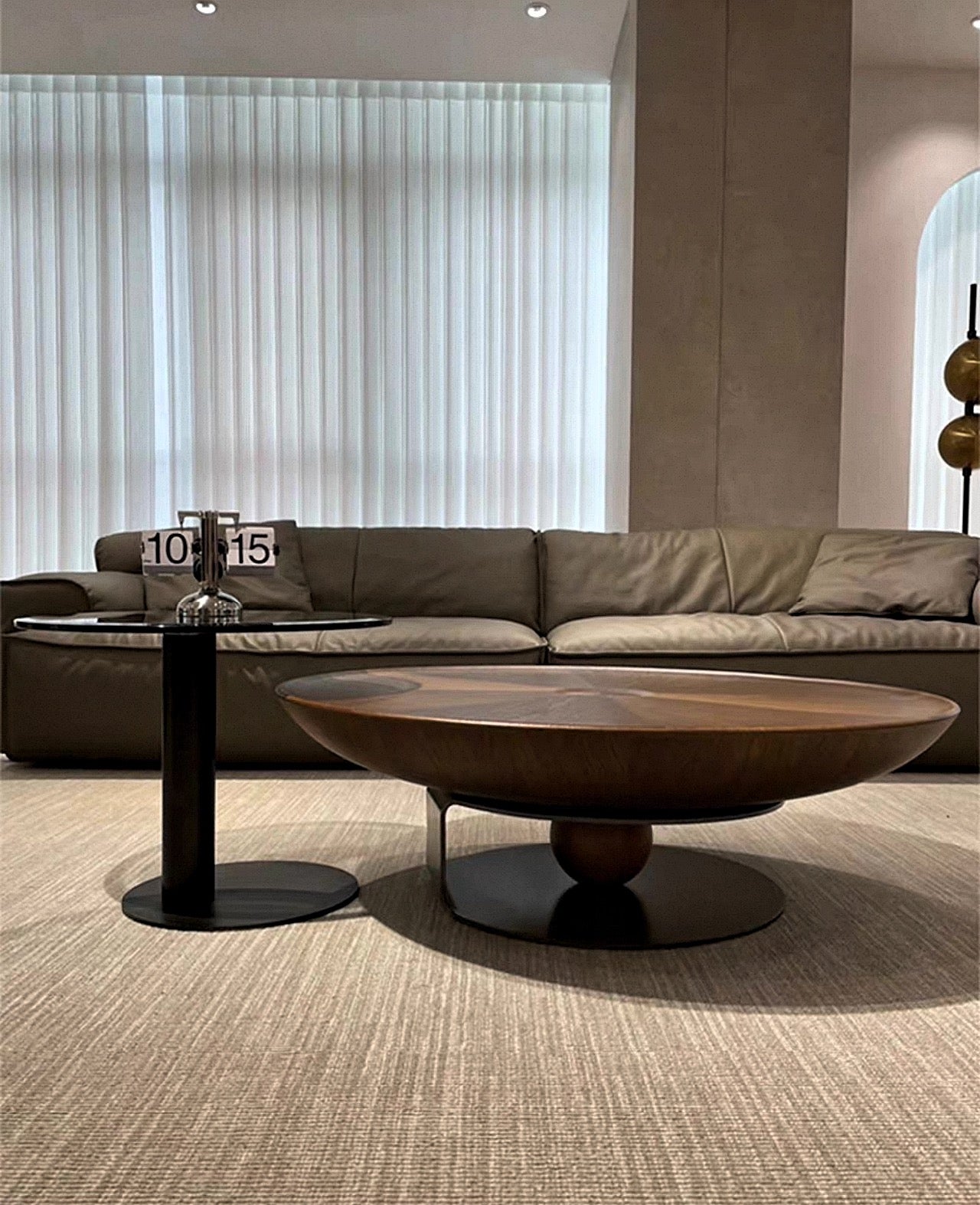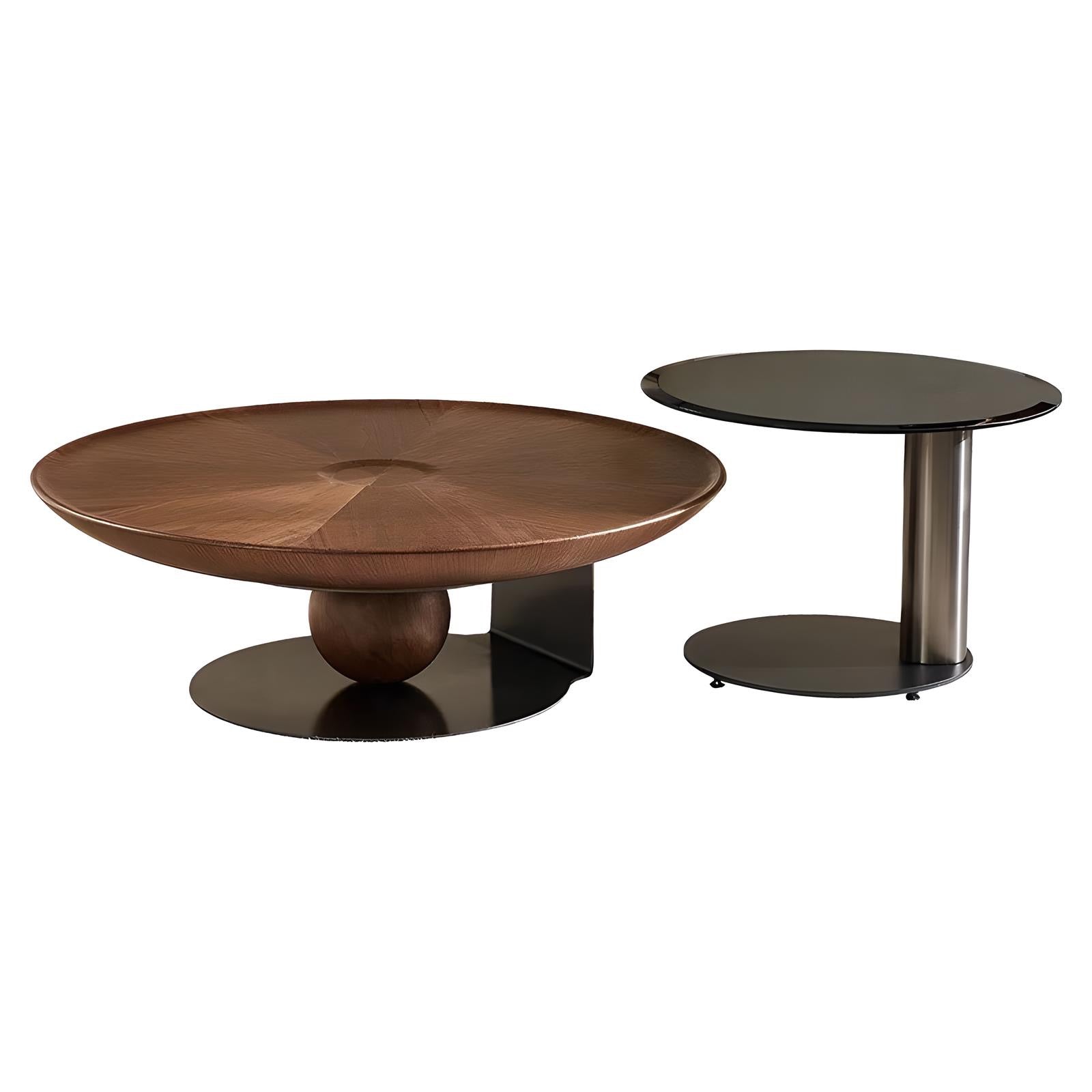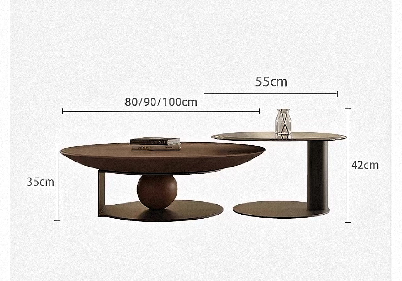 The Solar Orbit Modern Coffee & Side Table Set brings contemporary elegance to your home with its striking design and premium craftsmanship. The coffee table features a unique concave sunburst wood top, supported by a sculptural sphere and sleek metal base, creating a bold statement piece. The matching side table, with its smoked tempered glass top and minimalist frame, offers both style and function. Perfect for modern living rooms, this designer table set is available in multiple sizes (80/90/100cm) to suit any space. Ideal for those seeking luxury furniture with timeless appeal.
