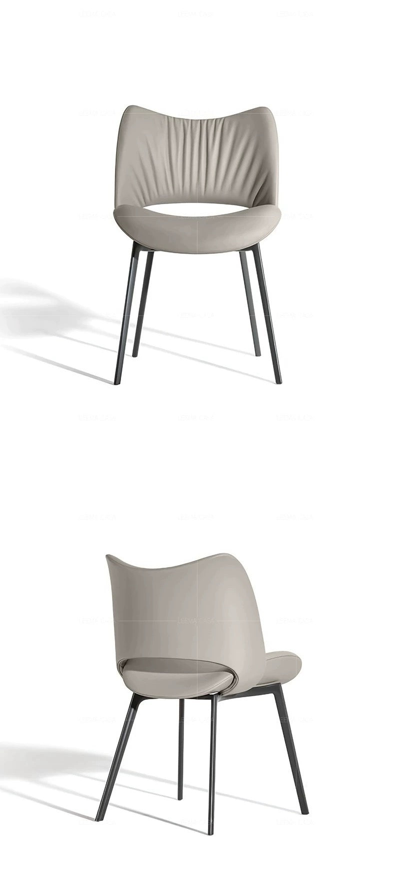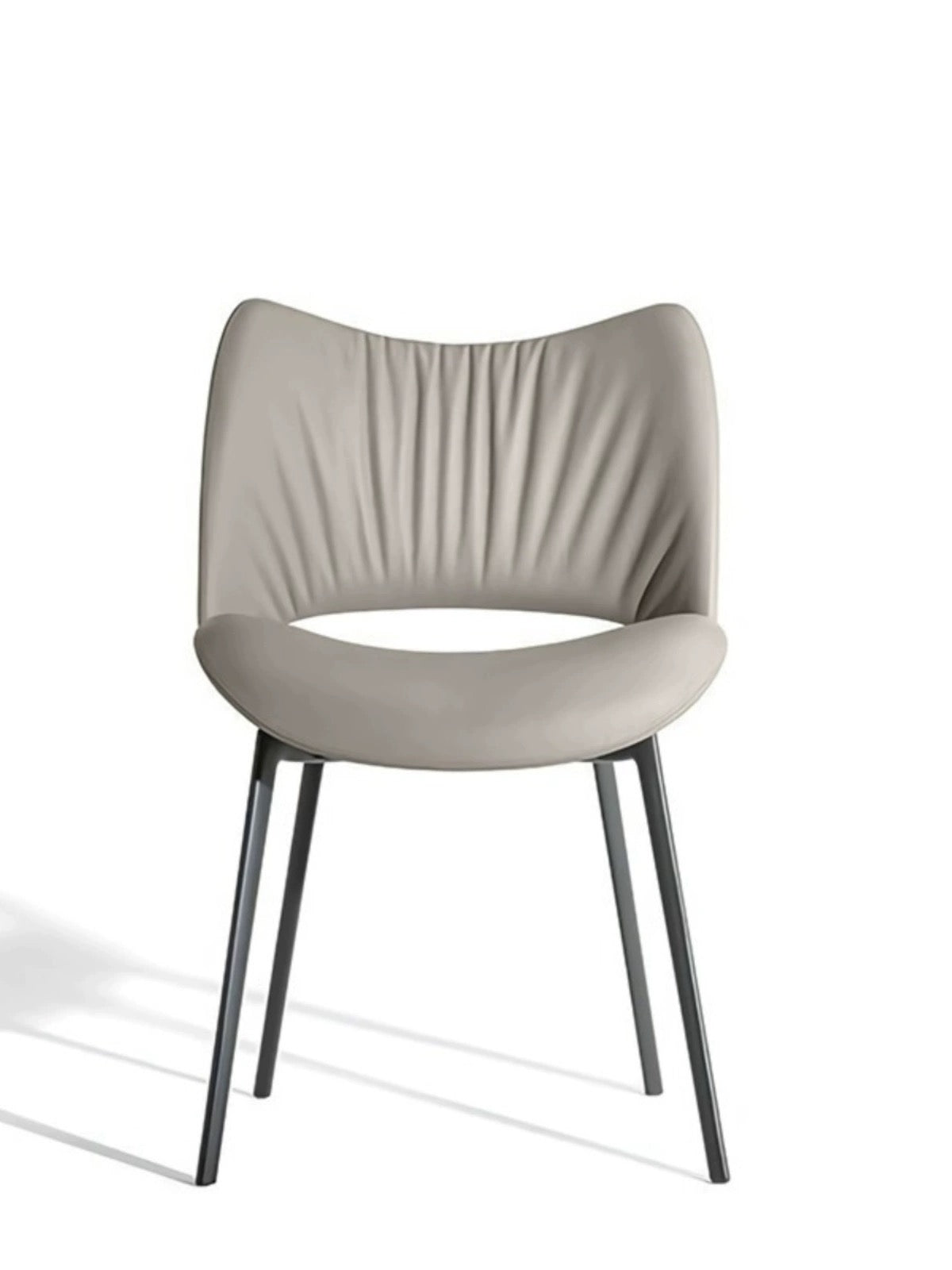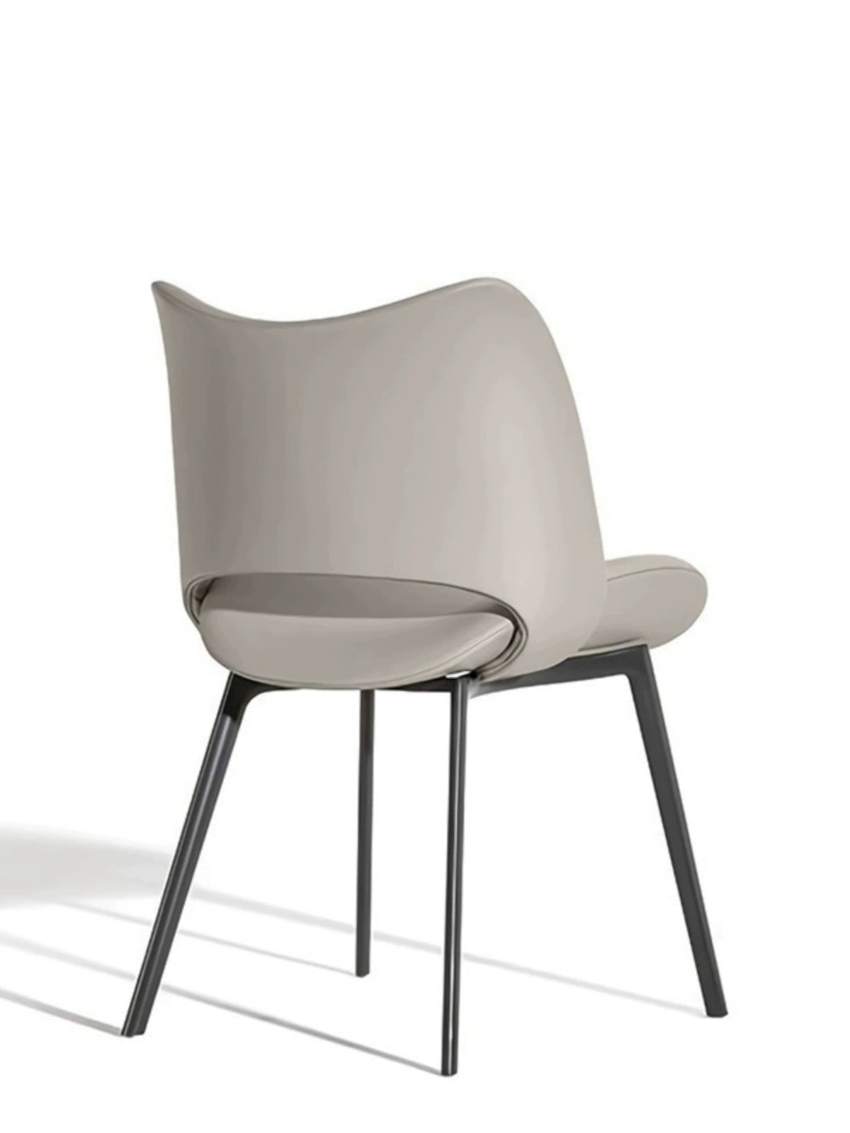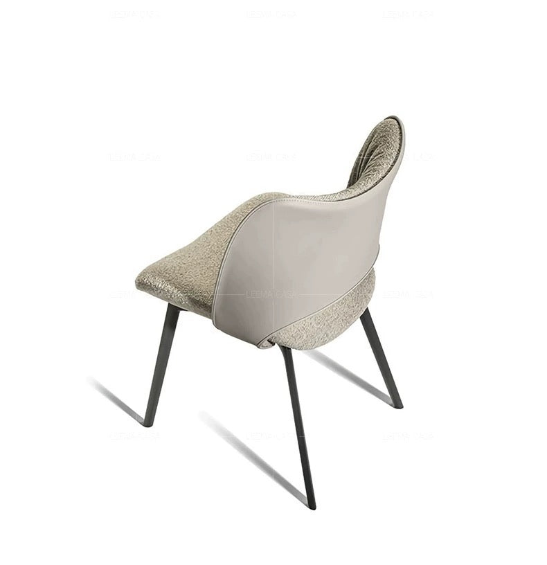 The Chic Embrace dining chair offers a perfect blend of modern design and luxurious comfort. Its sculpted backrest, with gently gathered detailing, wraps around to form a snug, supportive seat that invites you to relax and enjoy your meals. Upholstered in a soft, durable fabric or sleek leather, the chair is available in sophisticated shades such as neutral taupe, elegant gray, and contemporary beige. The sturdy metal legs provide stability and a touch of industrial chic, making the Chic Embrace an ideal addition to both contemporary and classic dining spaces. Whether used in a dining room, kitchen, or office, this chair brings a refined elegance and superior comfort to any setting.