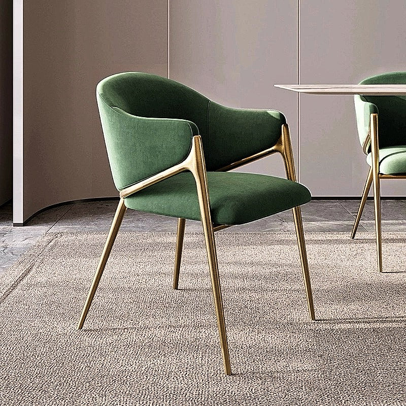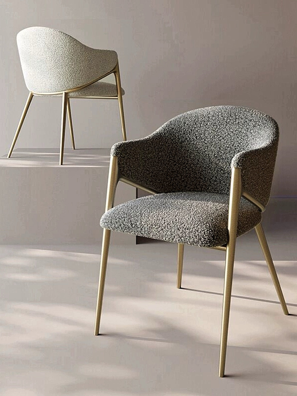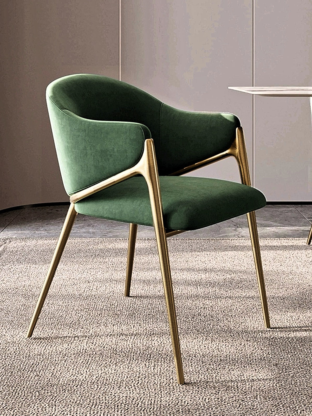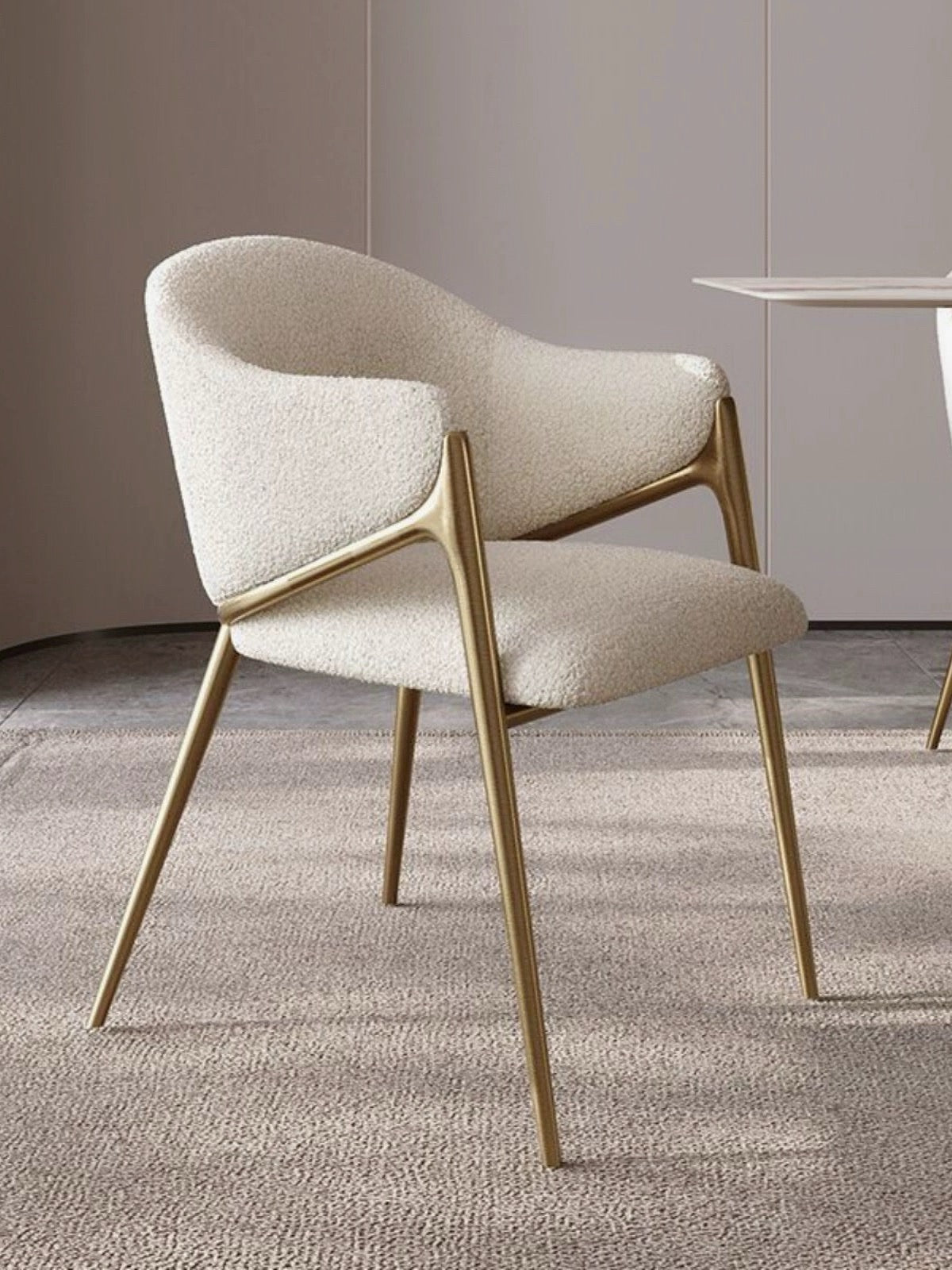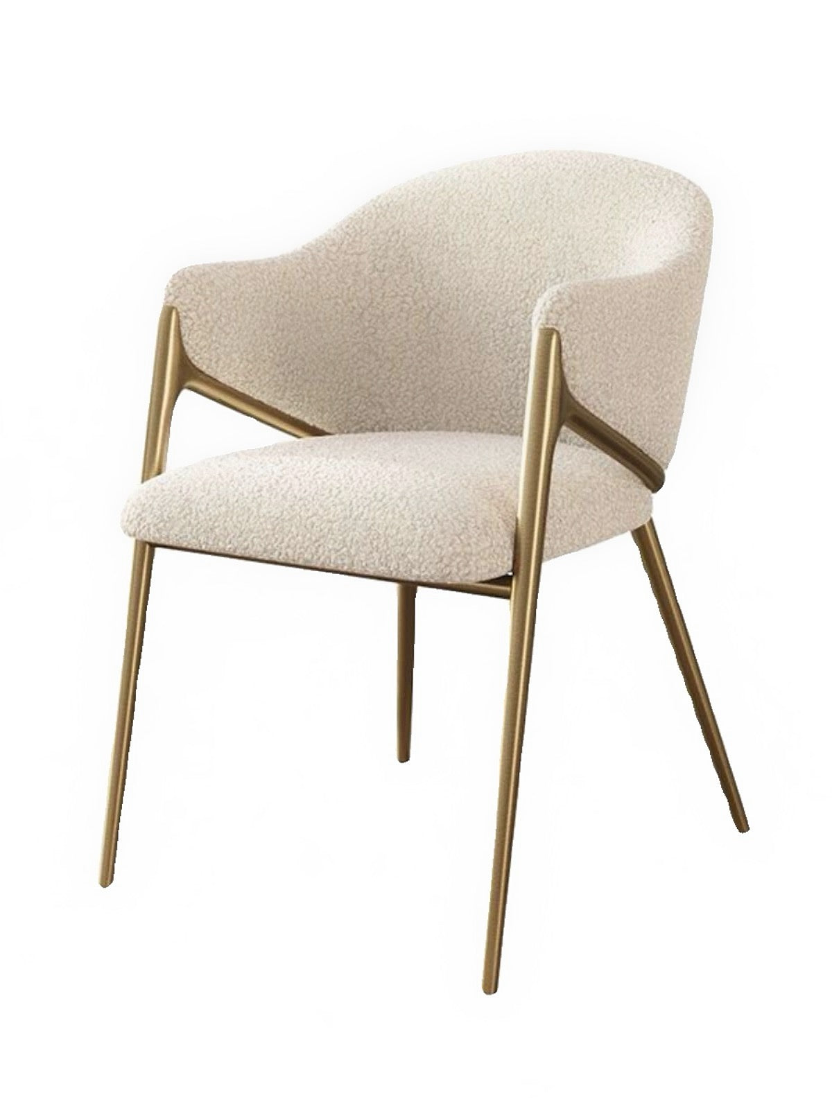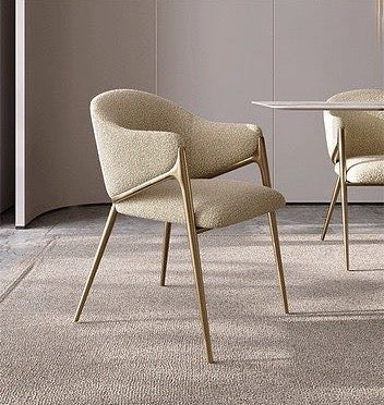 The Luxe Haven dining chair combines contemporary design with luxurious comfort. Its gracefully curved backrest and plush, textured upholstery ensure a comfortable seating experience, while the slim, gold-toned legs add a touch of sophistication. Available in multiple colors, including creamy ivory, sleek gray, rich green, and warm tan, the Luxe Haven is a versatile piece that complements a variety of interior décors. This chair is designed to elevate your dining area, providing both style and comfort for an elegant dining experience.