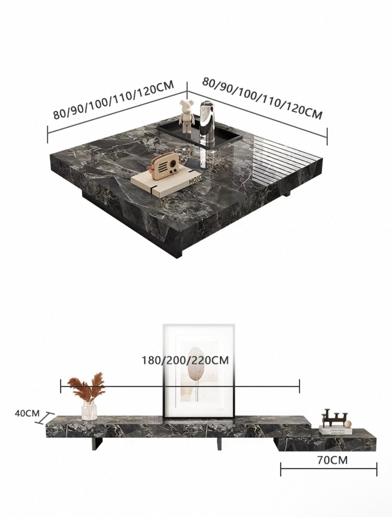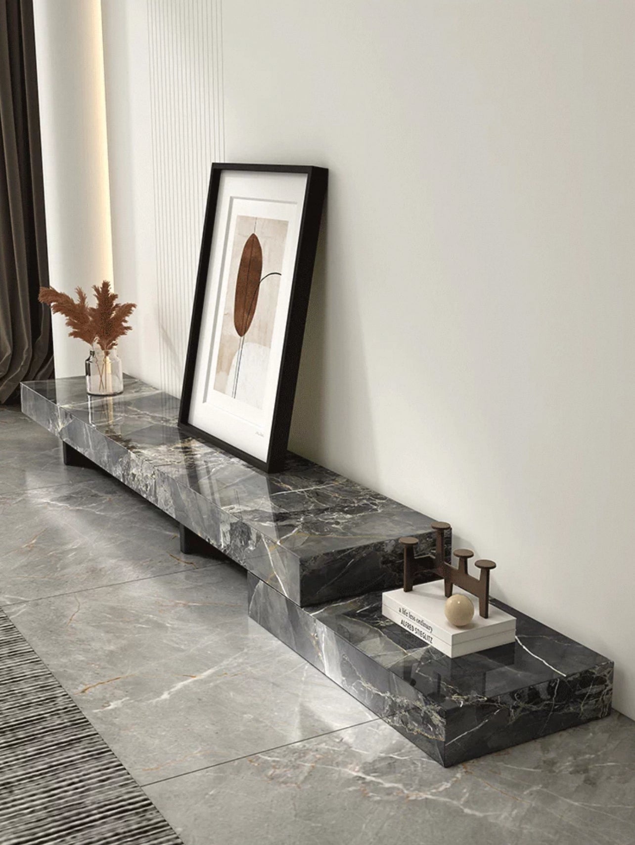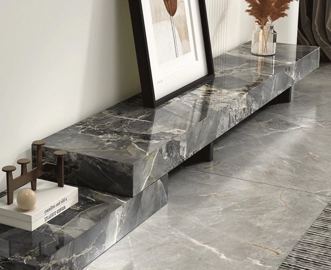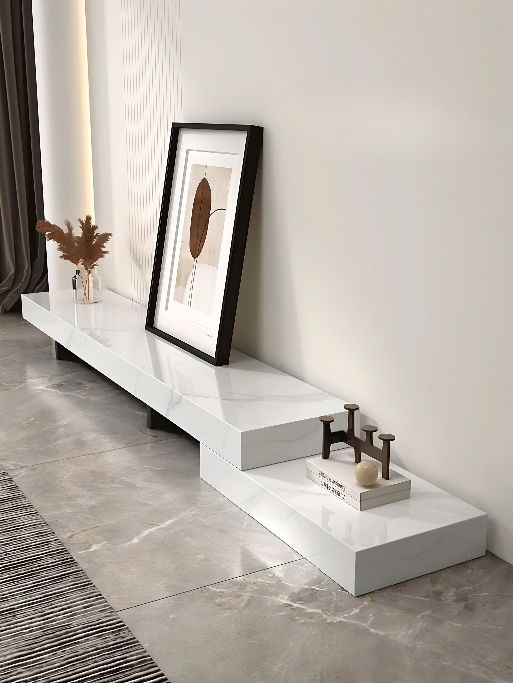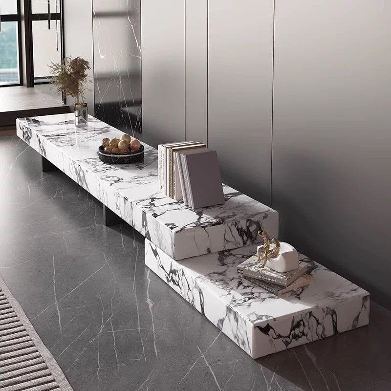 Elevate your living room with the Eterna Luxe TV Unit, a modern statement piece blending timeless elegance and functionality. Crafted with premium sintered stone in multiple marble finishes, this low-profile entertainment console features a sleek stepped design perfect for TVs, décor, and books. Available in various colors and sizes, it’s scratch-resistant, durable, and easy to maintain—ideal for contemporary homes seeking luxury and style.