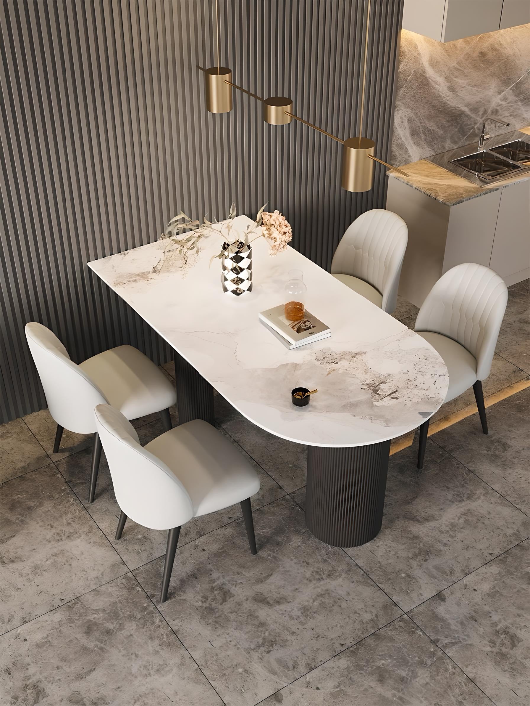 The Serenity Elegance Dining Table is the epitome of modern sophistication and timeless style. Crafted with a sleek, oval-shaped top available in a variety of luxurious marble finishes, including the exquisite Chanel, Patek Philippe, Italian Grey, Laurentian Platinum, and Pandora options, this table effortlessly enhances any dining space.