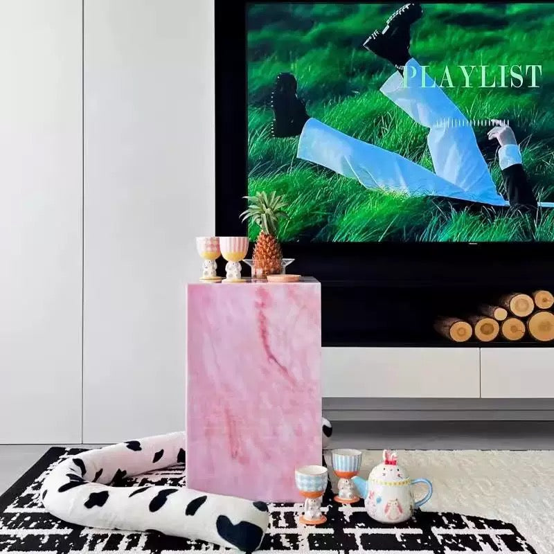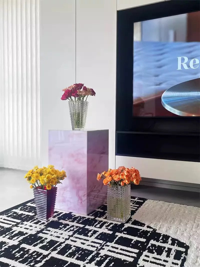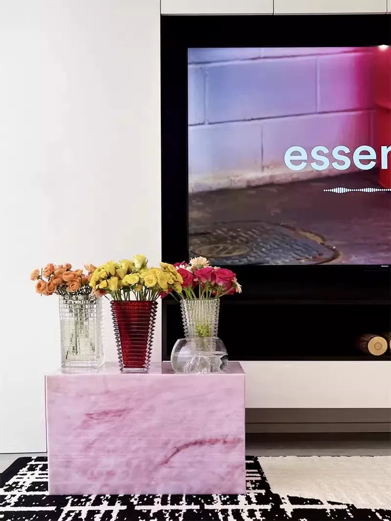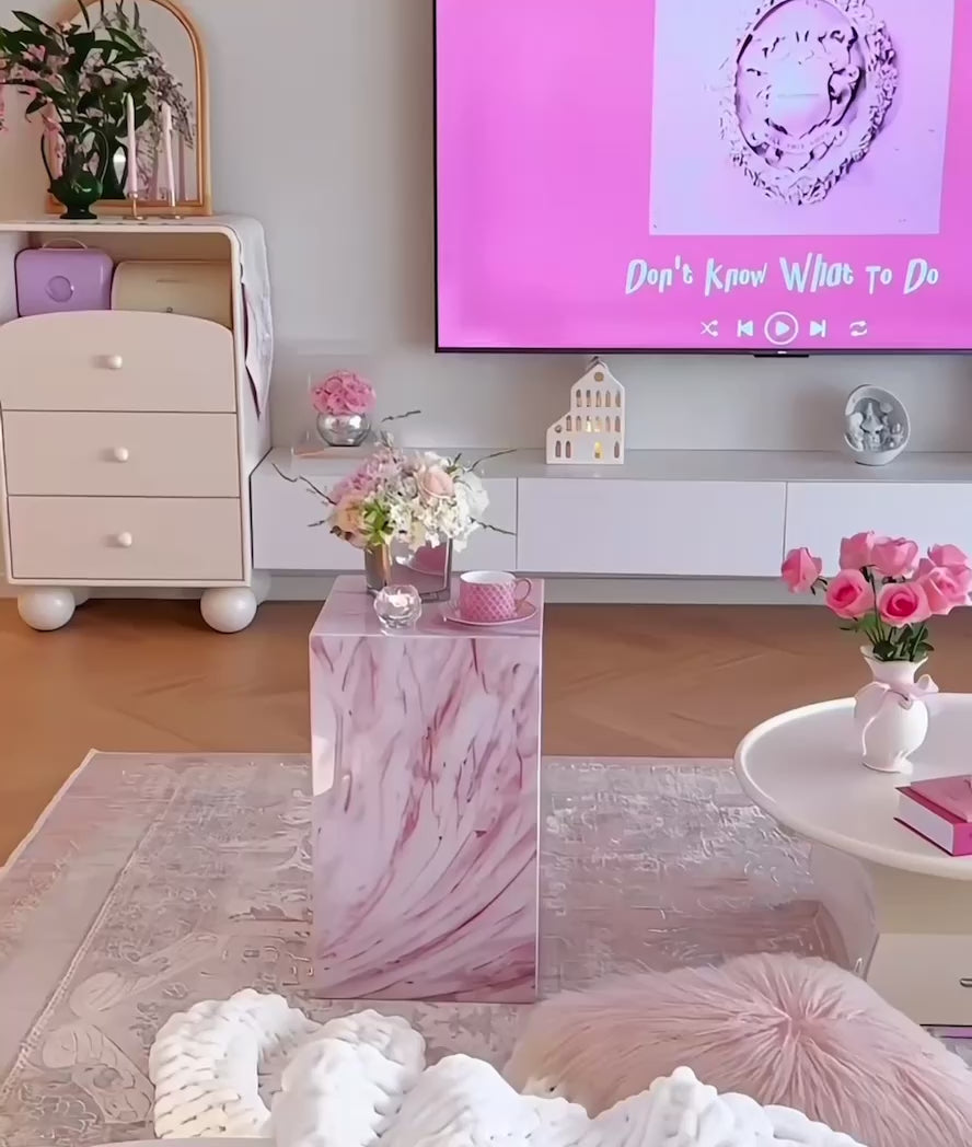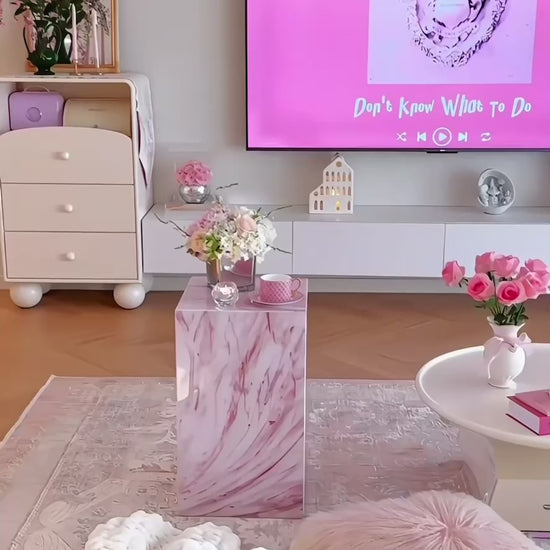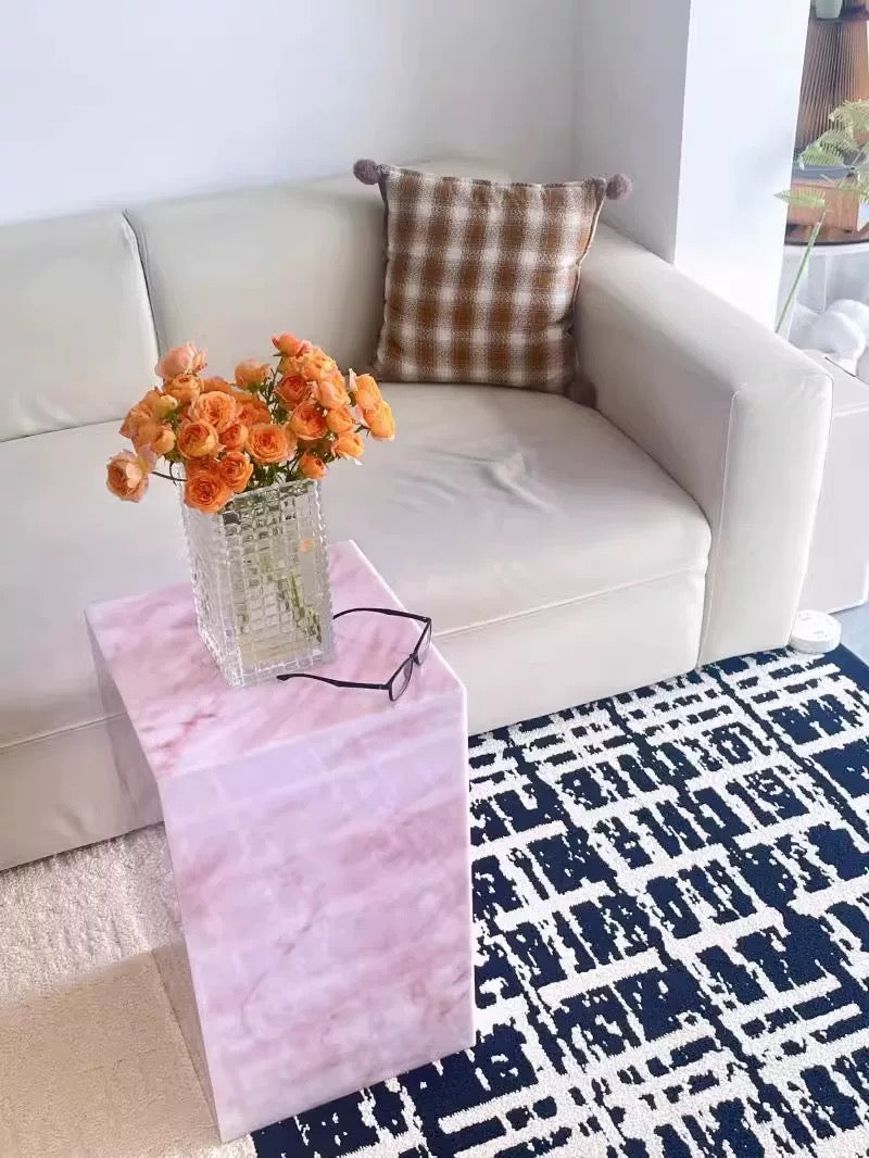 Bring a touch of modern glamour to your home with the Rosé Luxe Acrylic Side Table. Crafted from premium acrylic with a stunning pink marble-effect finish, this versatile piece doubles as a side table, display pedestal, or stylish nightstand. Its clean cube design adds a chic minimalist vibe, while the durable lightweight build makes it easy to move and style in any space. Perfect for living rooms, bedrooms, or showrooms, this table combines elegance with everyday functionality.