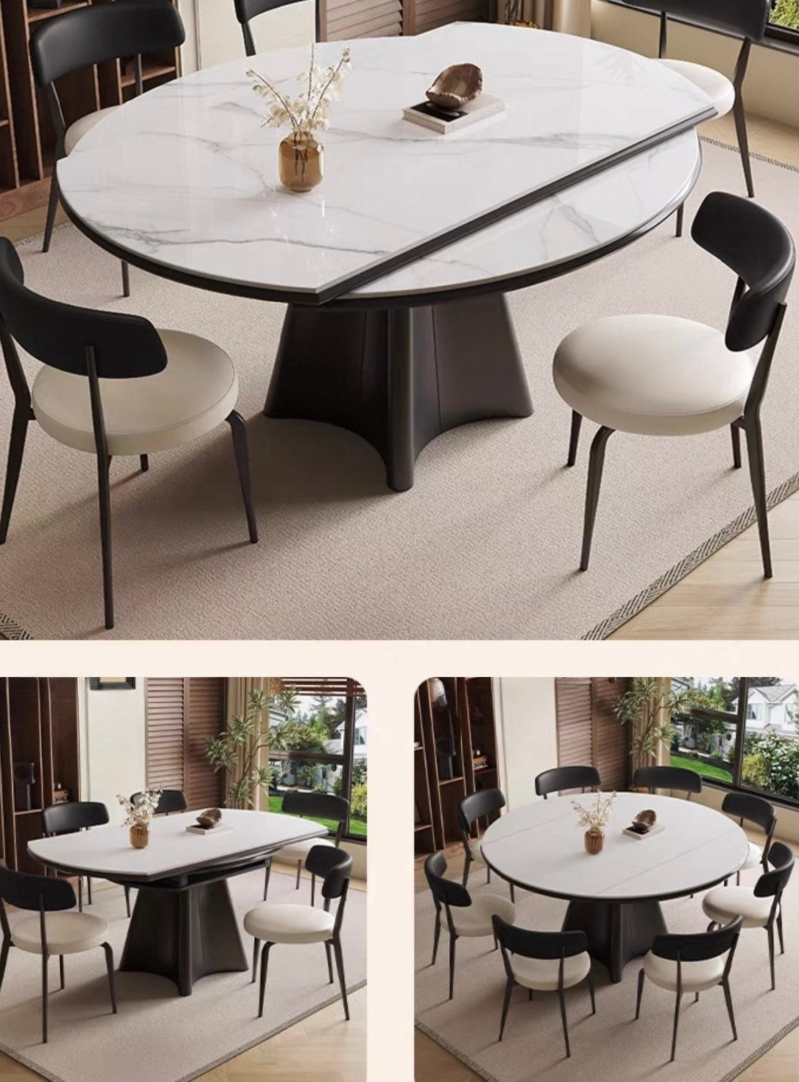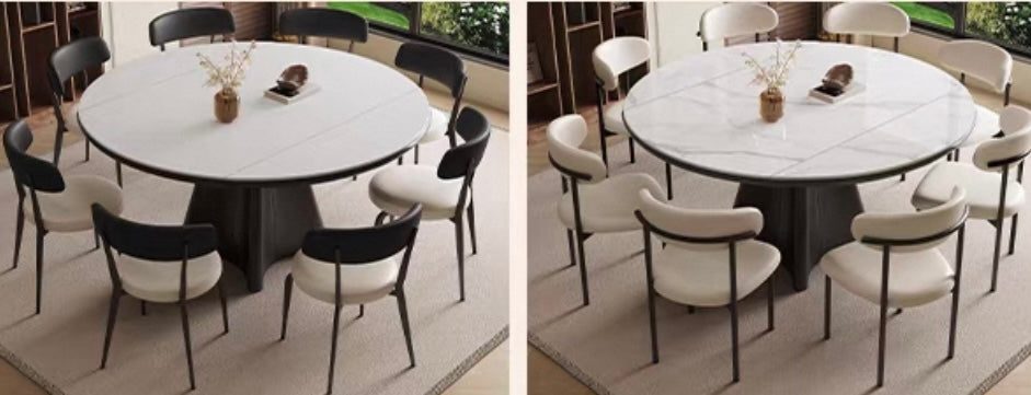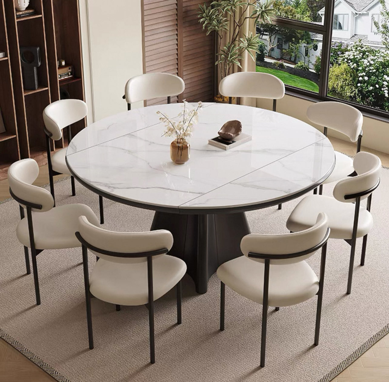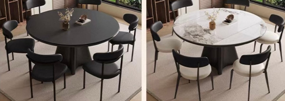 Meet the VersaLuxe Stone Extendable Dining Set – where style meets versatility. This modern dining table features a 12mm sintered stone top that resists heat, scratches, and stains, making it perfect for daily use and dinner parties alike. Effortlessly switch between a round or square shape to seat 4 to 8 people, thanks to its smart extendable design.