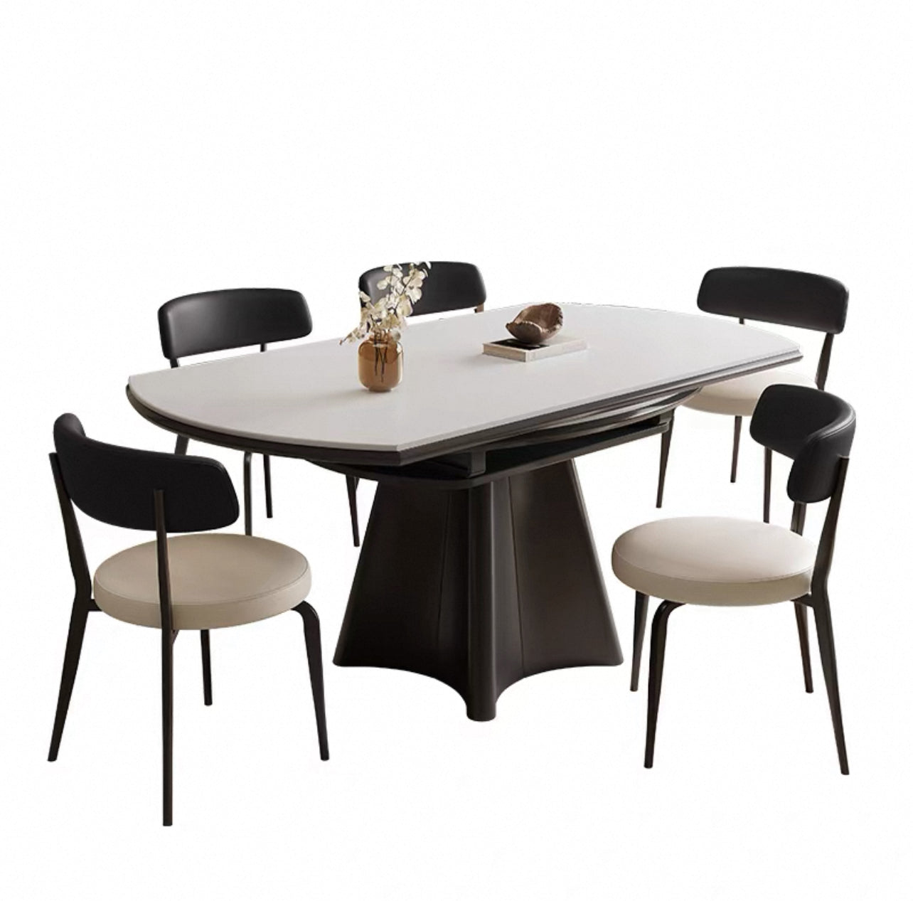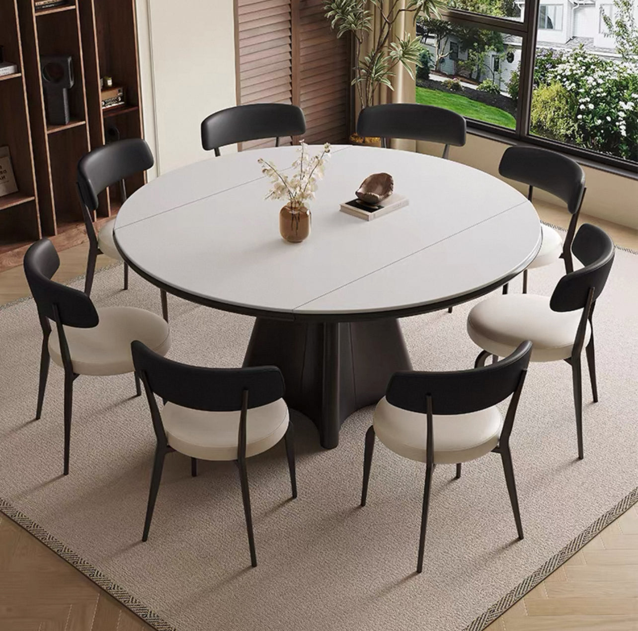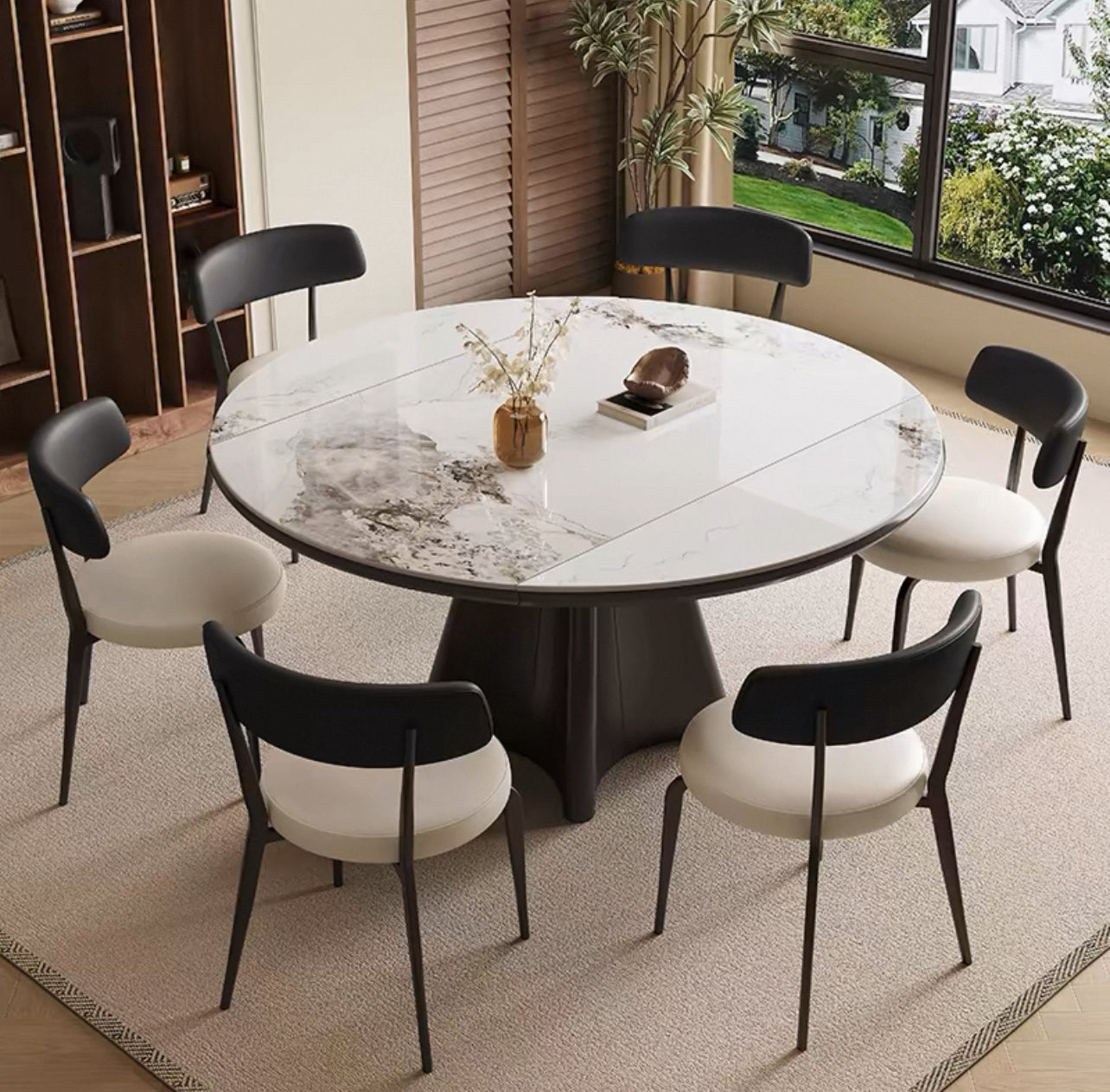 Meet the VersaLuxe Stone Extendable Dining Set – where style meets versatility. This modern dining table features a 12mm sintered stone top that resists heat, scratches, and stains, making it perfect for daily use and dinner parties alike. Effortlessly switch between a round or square shape to seat 4 to 8 people, thanks to its smart extendable design.